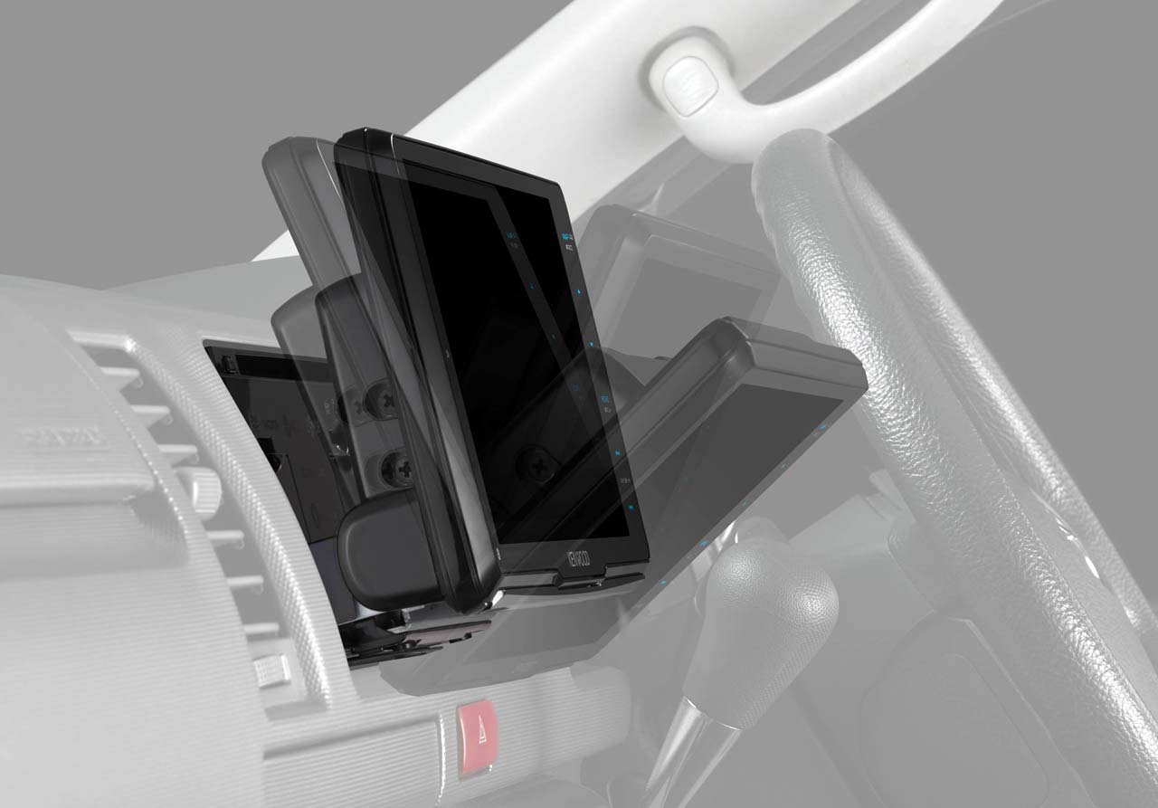 ディスプレイが浮いているということで走行中の振動も気になるところですが、ケンウッド独自の機構技術によって走行時の振動によるディスプレイの不快なブレを大幅に低減。走行中でもブレない高い視認性を確保したということです。