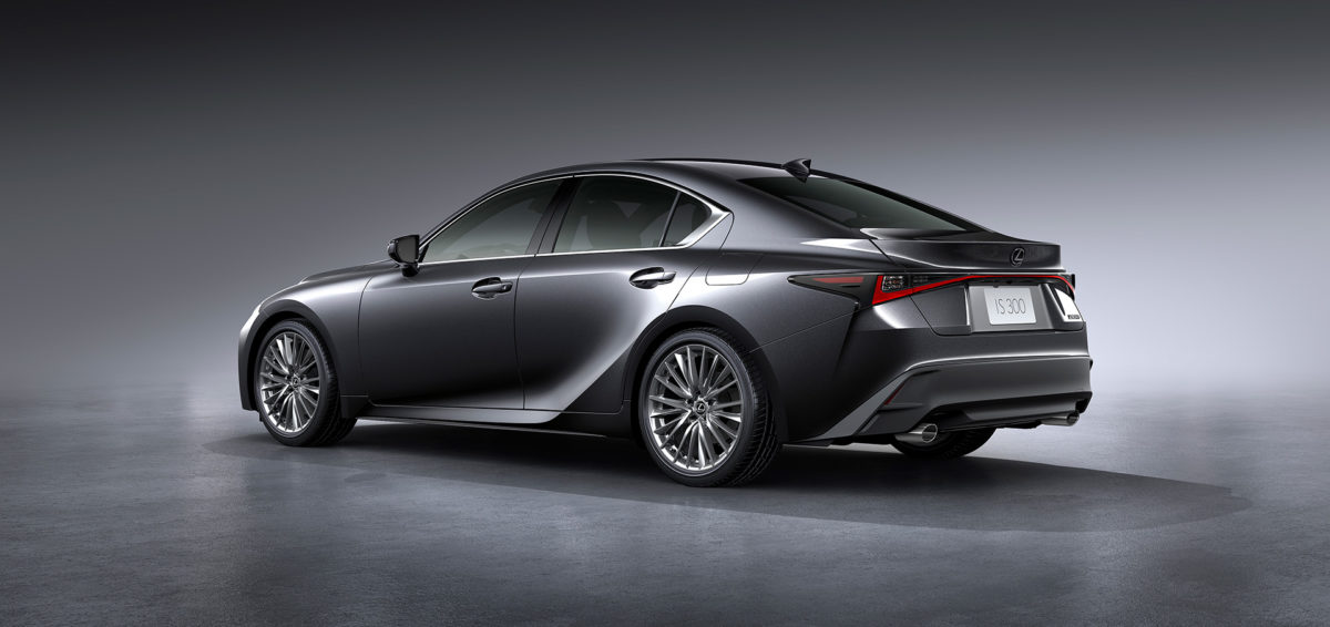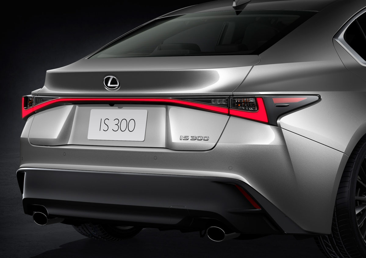 特徴的な薄型ヘッドランプのシャープなラインはグリルの先端からトランクの後端まで鋭いエッジと美しい曲面を作り、ISのフォルムを際立たせます。「寄絞り(よせしぼり)型構造」と呼ぶ最新プレス技術によって、膨らんだリアフェンダーや美しく絞り込まれたキャビン、その間をつなぐCピラーなどの豊かな造形ができ上がっています。リアスタイルでは全幅に亘るLEXUSのLをモチーフにしたテールランプは後続車にもLEXUSの存在を印象づけます。