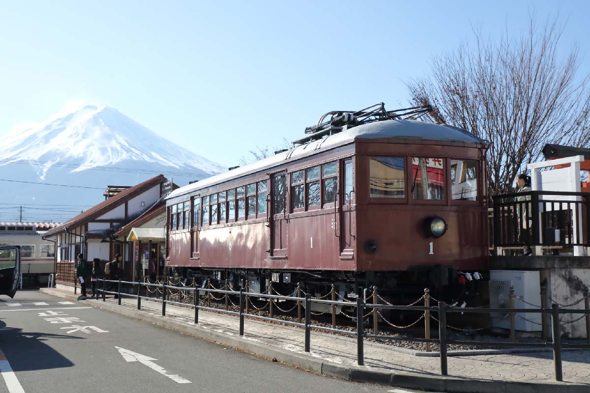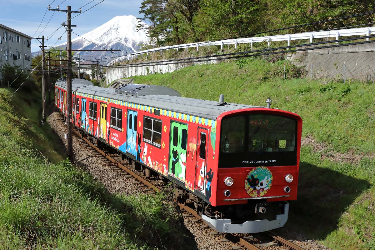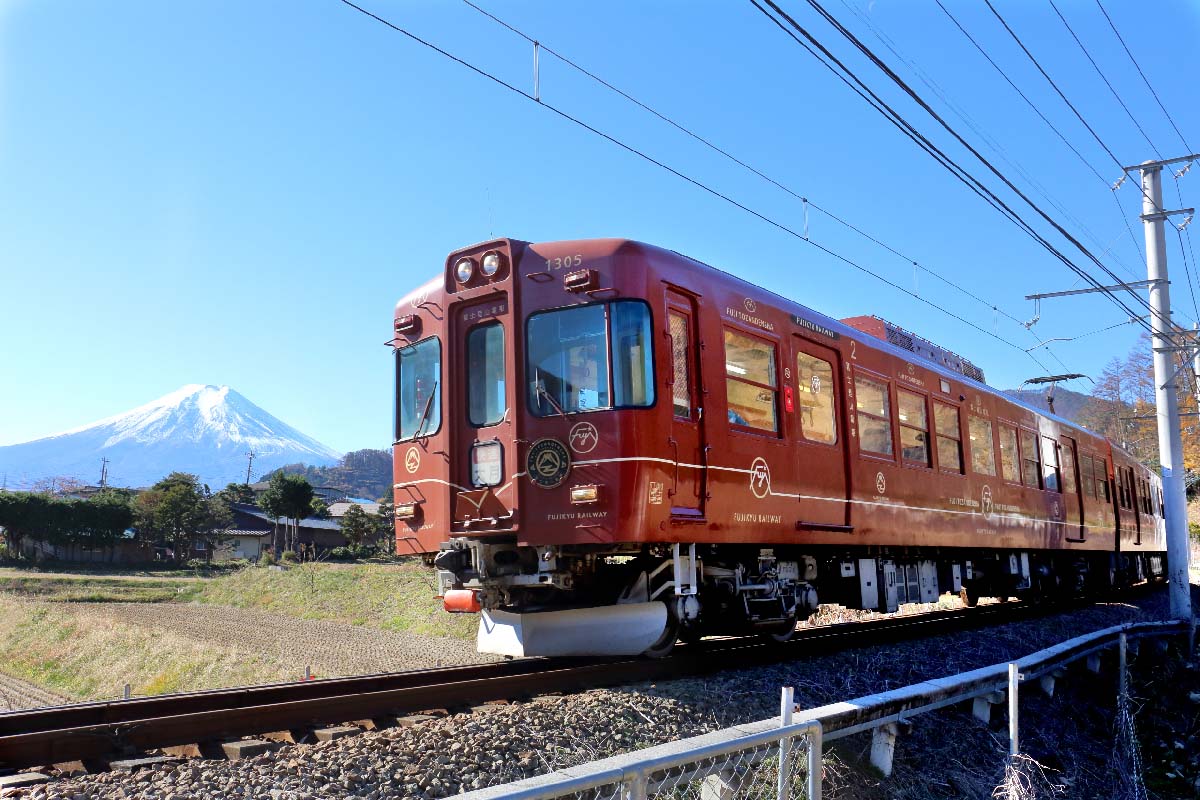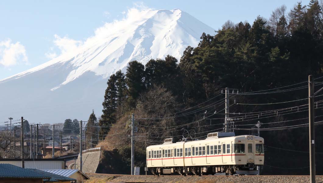 富士山の北麓、山梨県内を走る富士急行線。「富士山に一番近い鉄道」を名乗るだけに、電車の内外から眺める富士山の姿は迫力そのものだ。