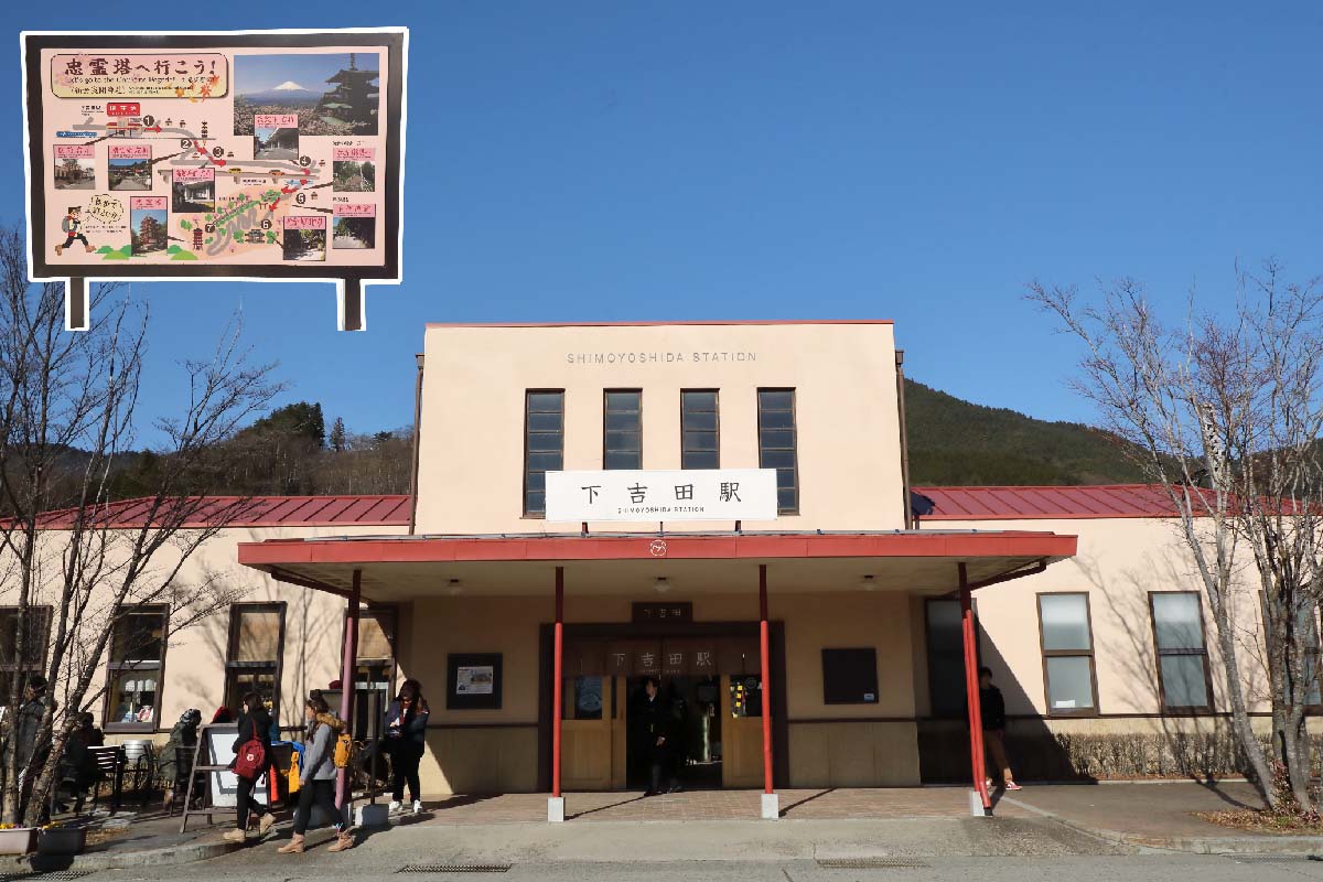 筆者が下吉田駅を下車した日は、まだ訪日外国人が多いころだった。そのせいか下吉田駅の裏手にある新倉富士浅間神社と忠霊塔へ向かう人たちが目立った。いつの間にか忠霊塔は下吉田駅から行く人気の観光スポットになっていた。