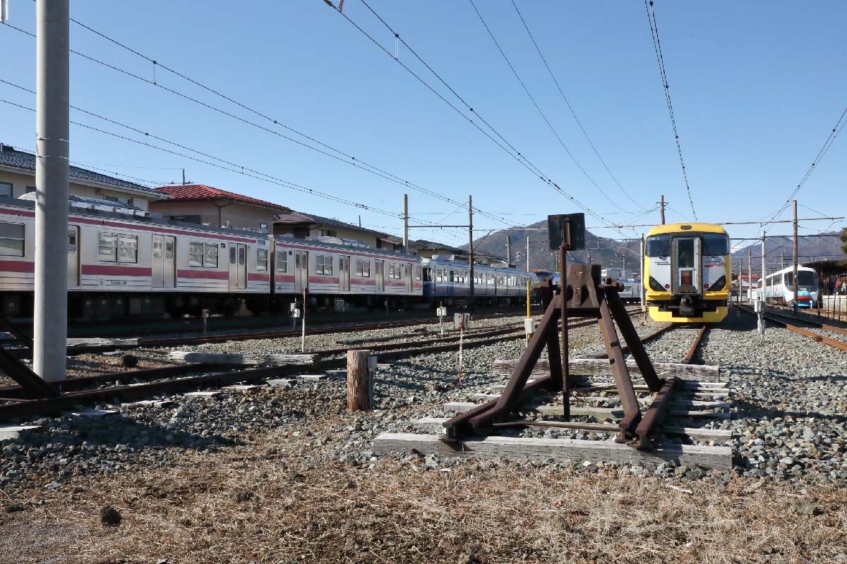 さまざまな理由が重なり、富士山駅はスイッチバック駅として現在に至るのである。同駅では、改札口を入った2、3番線が主に使われている。改札口を入った左側の3番線ホームが主に大月、東京方面、右側の2番線が河口湖方面で、発車した電車はホームの先でクロスして各方面へ向かう。