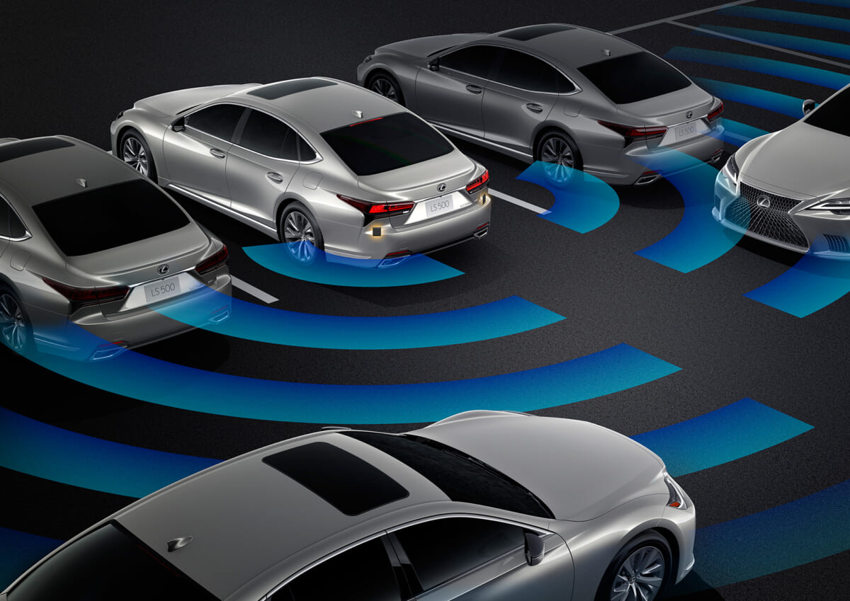 また、最新の駐車支援技術によって駐車場でのハンドル操作、アクセル、ブレーキ、シフトチェンジに至るまでの全操作を車輌が支援します。カメラと超音波センサーによる全周囲監視と俯瞰絵像による切り返し位置や目標駐車位置を常に表示して安全/安心でスムーズな駐車を実現しています。