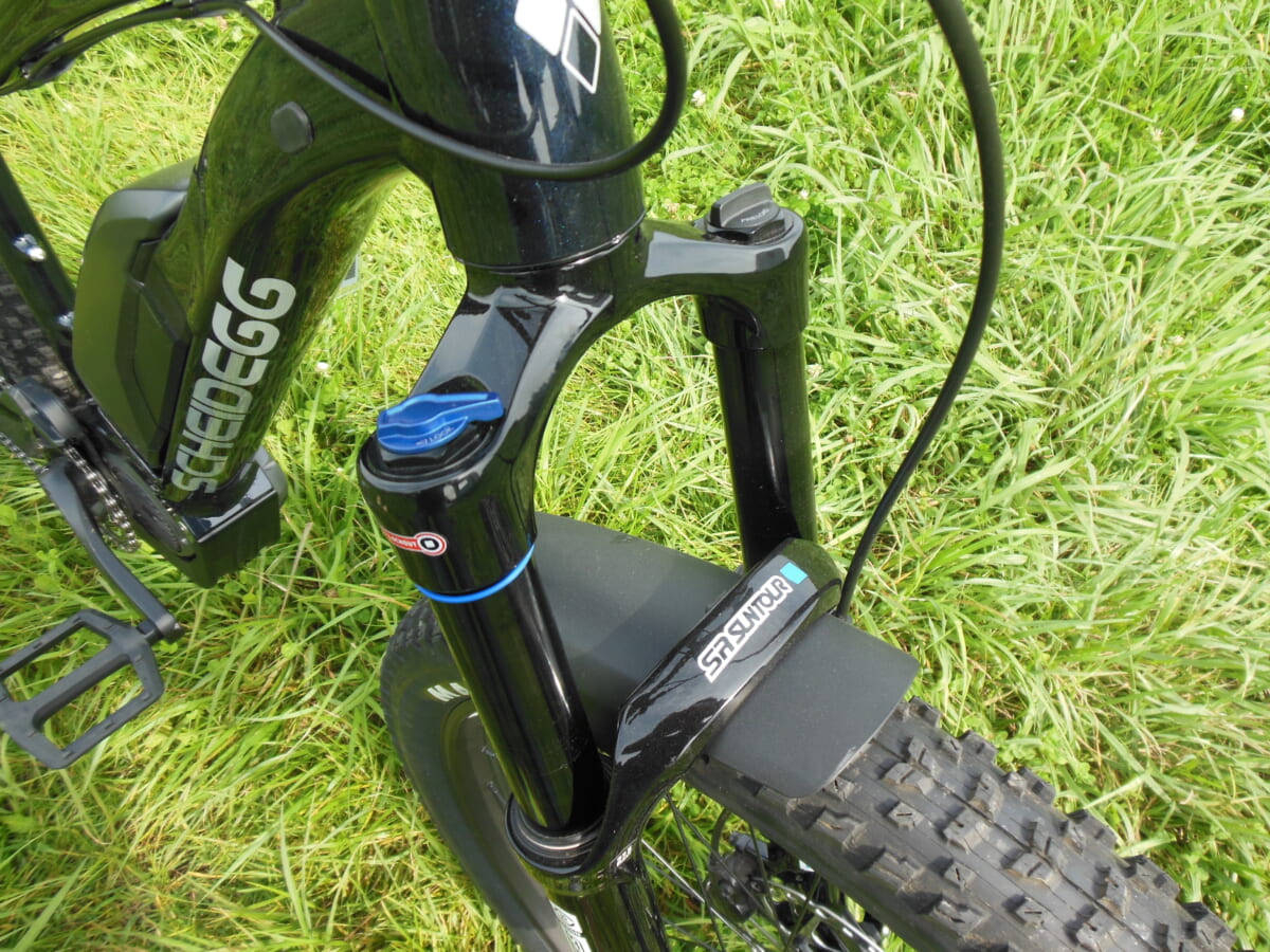 フロントにはサンツアー製のサスペンションを備え、130mmのトラベル量は必要にして十分。整地された路面ではアブソーバーの上部に備わるロックをONにすれば、ペダリングのパワーが分散することもなく快適に走ることができます。電動アシストの印象はトルク重視の印象があり、低いギアで踏み込んで行くことでミューの低い路面でも安定した走りを楽しむことができました。基本的に日本での電動アシストバイクはアシスト速度が24km/hまでとなり、スピードを求めるロードバイクよりも低速での使用が中心となるMTBにはアシストモーターの恩恵は大きいでしょう。