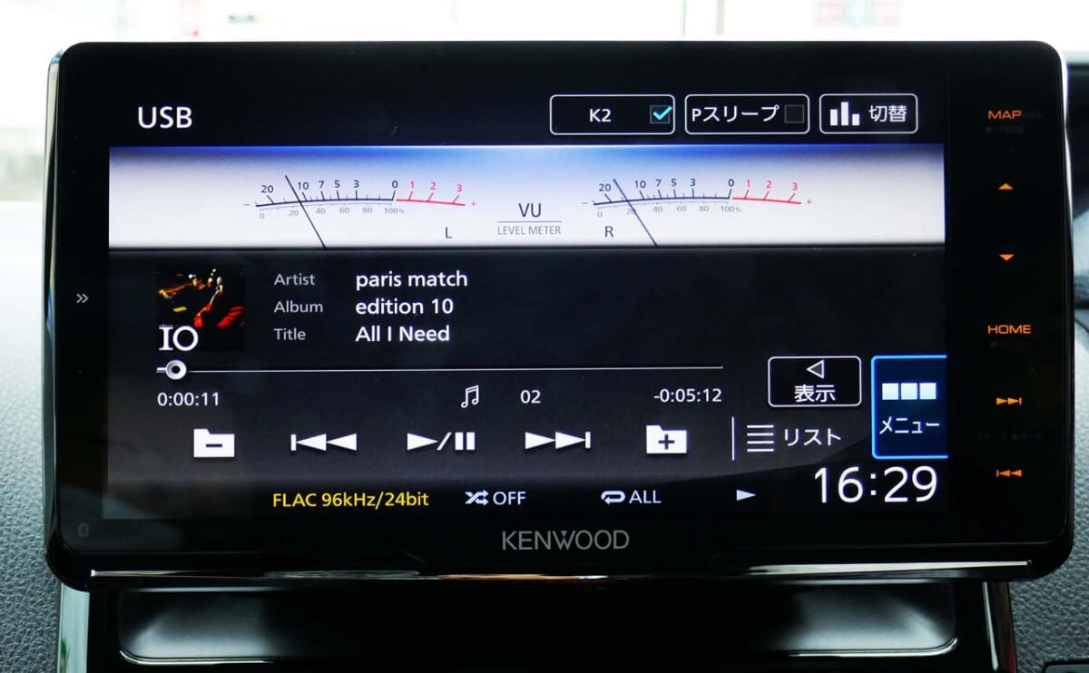 オーディオもカーナビ中、最高スペックを搭載しました。ケンウッドが長いこと経験を積んできたハイレゾ再生にも対応し、CDをはるかに超える広帯域の音楽が楽しめるのです。スペックとしては従来機を踏襲していますが、「DSD」や「FLAC」「WAV(192kHz/24bit)」といった、さまざまなハイレゾ音源フォーマットに対応。