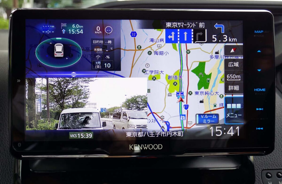 そして、彩速ナビで見逃せないのがドライブレコーダーとの連携です。MDV-M907HDFでも、ナビ画面上にドライブレコーダーの映像を映し出せる機能を備搭載。その機種は前後撮影に対応した「DRV-MN940」です。前後のカメラとドライブレコーダー本体を別体式とすることで、カメラ部のコンパクト化に成功。カメラを取り付けても視野を広く取りつつ、前後方向の状況をリアルタイムに捉えられるのです。