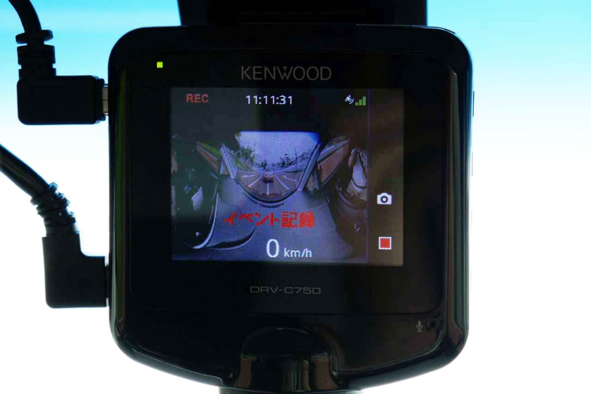 とはいえ、念頭に置くべき注意点もあります。1枚のセンサーですべての撮影領域をカバーするため、一部分を切り出すと当然ながら粗い画像となります。ケンウッドが発売するDRV-C750はこうした弱点を、同社が培ってきた映像技術で克服。360°撮影をしても十分な解像度と画質を確保できるドラレコとしているのです。