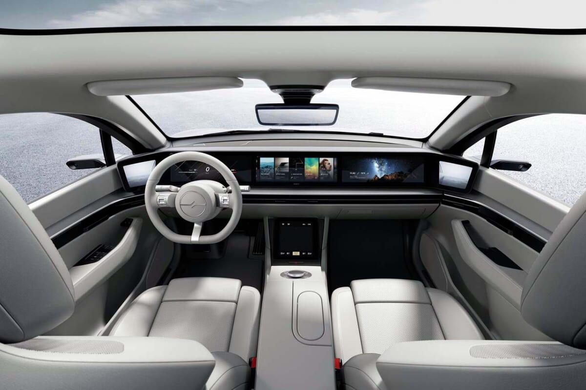 VISION-Sのボディサイズは、全長4895×全幅1900×全高1450mmとなっていて、ホイールベースは3000mmとメルセデスベンツ「Sクラス」並み。車格としてはかなりハイクラスを意識した造りとも言えます。パワートレーンは200kWのモーターを前後にそれぞれ1基ずつ配置した4WDのEVで、乗車定員は2+2の4名。フロントシート前方には横長の大型ディスプレイを配置し、タッチ操作や音声認識を活用することで、直観的な操作で様々なエンタテイメント系コンテンツを楽しめます。
