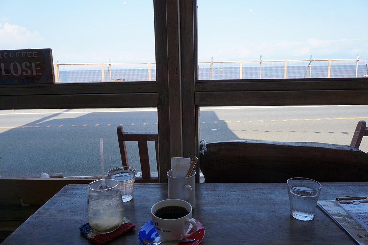 「マーロウ」を後にしてしばらく走ると、「南風COFFEE」に到着! こちらの「南風COFFEE」は、京浜急行「三浦海岸駅」からクルマで5分ほどの場所にあるカフェ。コーヒーやデザートのほか、カレーやホットドッグなどの軽食も楽しめます。営業時間は11時~18時で、火曜定休。