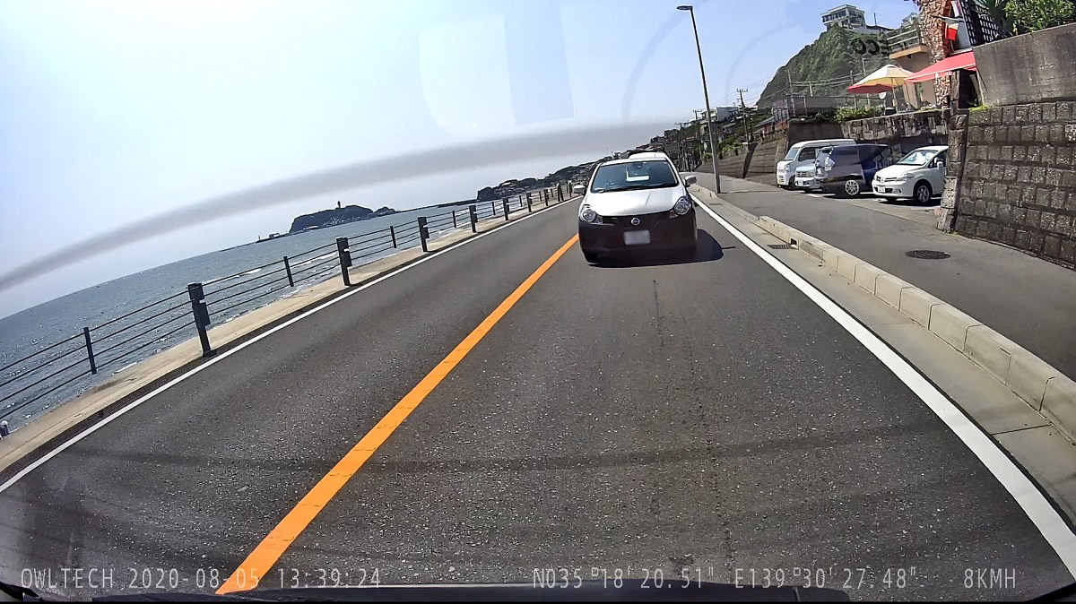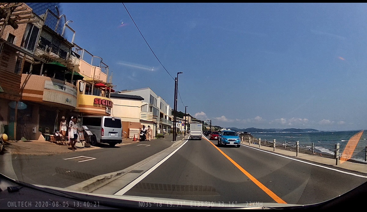 ということで、設置したばかりのドライブレコーダーの性能を試すため、オウルテックさんの社用車でちょっとしたドライブへ出かけてみましょう。茅ケ崎を経由して三浦海岸まで134号線の海沿いの道をドライブします。