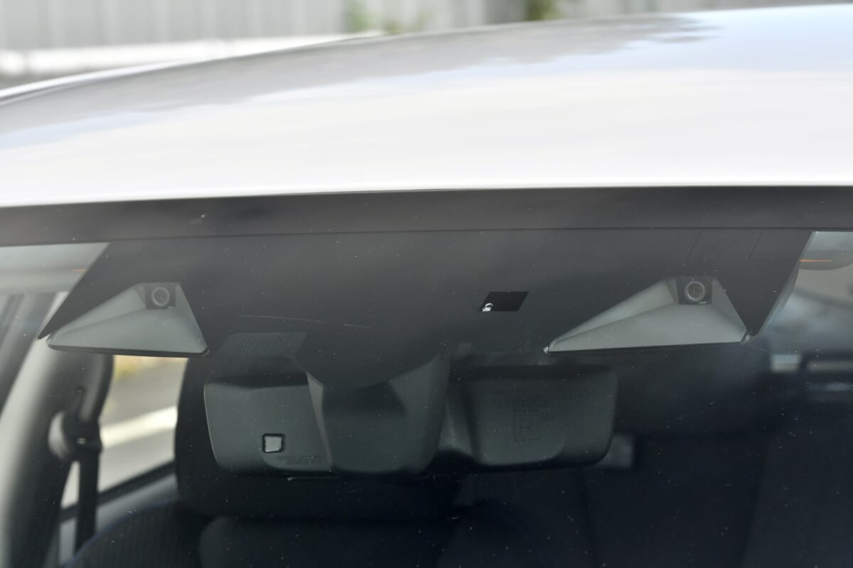 見逃せないのが「ドライバー異常時対応システム」の搭載です。これはダッシュボード中央上部に備えられた赤外線カメラでドライバーの表情を捉え、一定時間、顔の向きがそれたり、ステアリングから手を離し続けたりしていると(ハンズオフ走行時を除く)音と表示で警告を発し、それでもドライバーが反応しない場合には緩やかに減速しながらハザードランプを点灯。約30km/hにまで減速するとホーンまでも断続的に鳴らして周囲に異常を知らせ、停止に至るというものです。