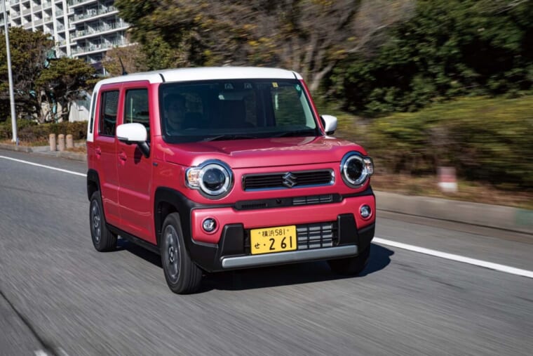 広い室内が人気の軽ハイトワゴンにSUVのアクティブさをプラスしたモデル。ベースはスペーシアだが、内外装に専用パーツを採用するなど、こだわった1台。発進時にモーターのみで走行可能なマイルドハイブリッド搭載。