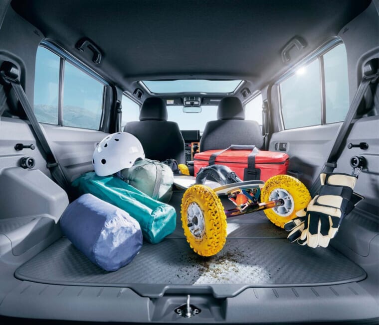 樹脂仕様のラゲッジボードとPVC仕様の後席シートバックを設定。汚れたアウトドア用品なども気にせず積めて便利だ。