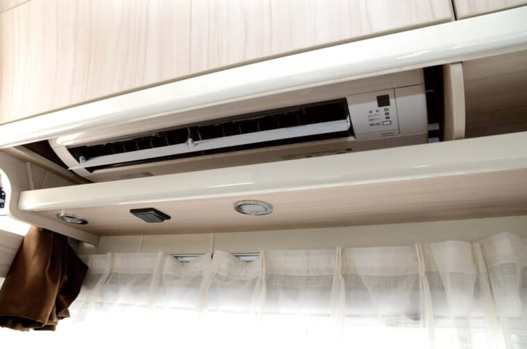 家庭用エアコンを標準装備し、暑い夏でも快適に過ごせる。外部電源に接続していないときは、リチウムイオンバッテリーで運転が可能だ。