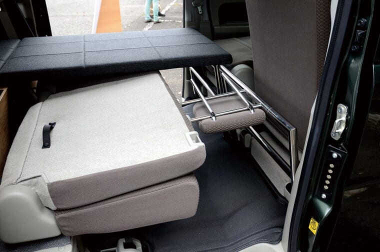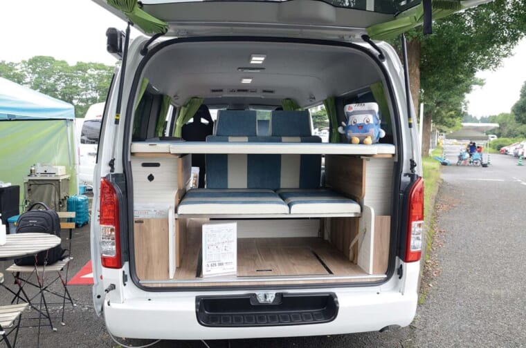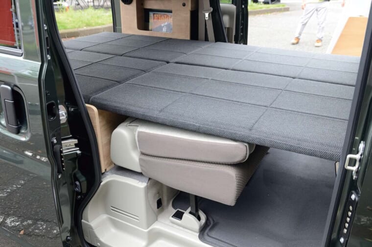 「家具を最低限にして、限られた室内空間を効率的に利用。純正リアシートを残しているので普段使いもラクです」