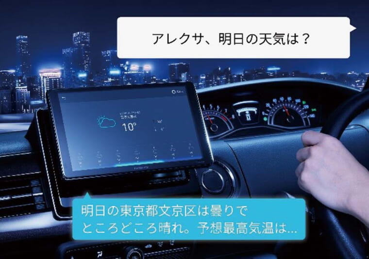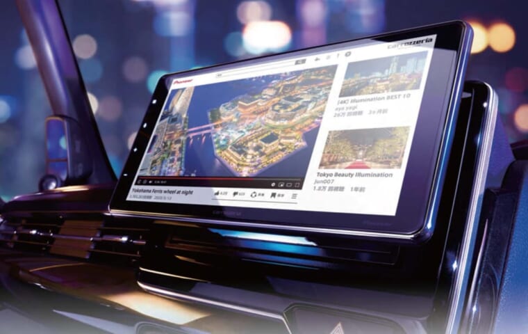 9V型の大画面を採用したディスプレイオーディオ。各スマホアプリに対応する。Wi-Fiテザリングによるワイヤレス接続でWEBブラウザへのアクセスができ、車内でYouTubeなどの動画サイトを大画面で楽しめる。