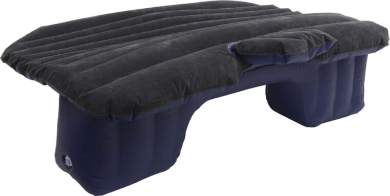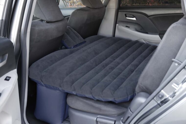 後席足元のスペースを埋め、ベッドとして使用できるエアーマット。セダンやワゴンでも、子どもや小柄な大人なら足を伸ばして寝られるスペースが生まれる。付属の電動ポンプで空気を入れるだけとセットも簡単。