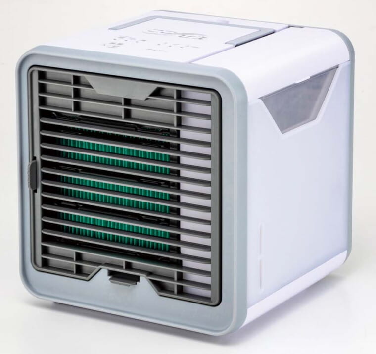 夏場の車中泊で重宝するパーソナルクーラー。気化熱現象を利用した冷却方法で効率良く冷却できる。風量は3段階で切り替え可能、防カビ抗菌フィルター完備の本格派で、連続9時間の運転を行えるのもポイントだ。