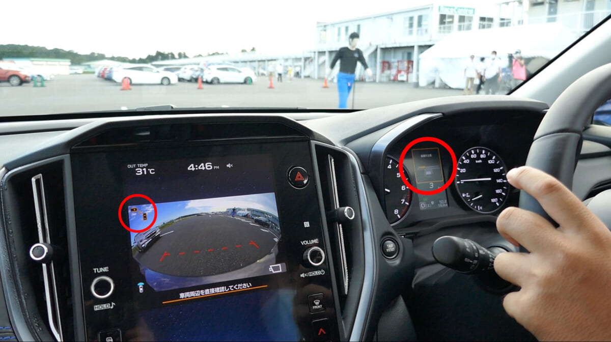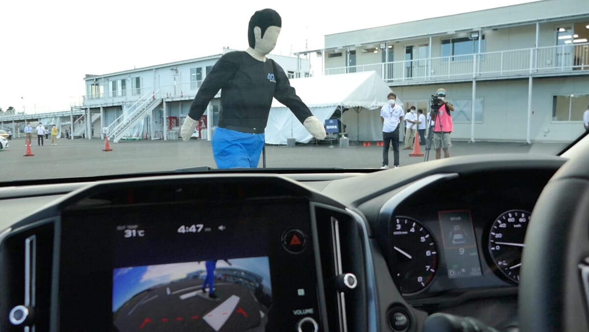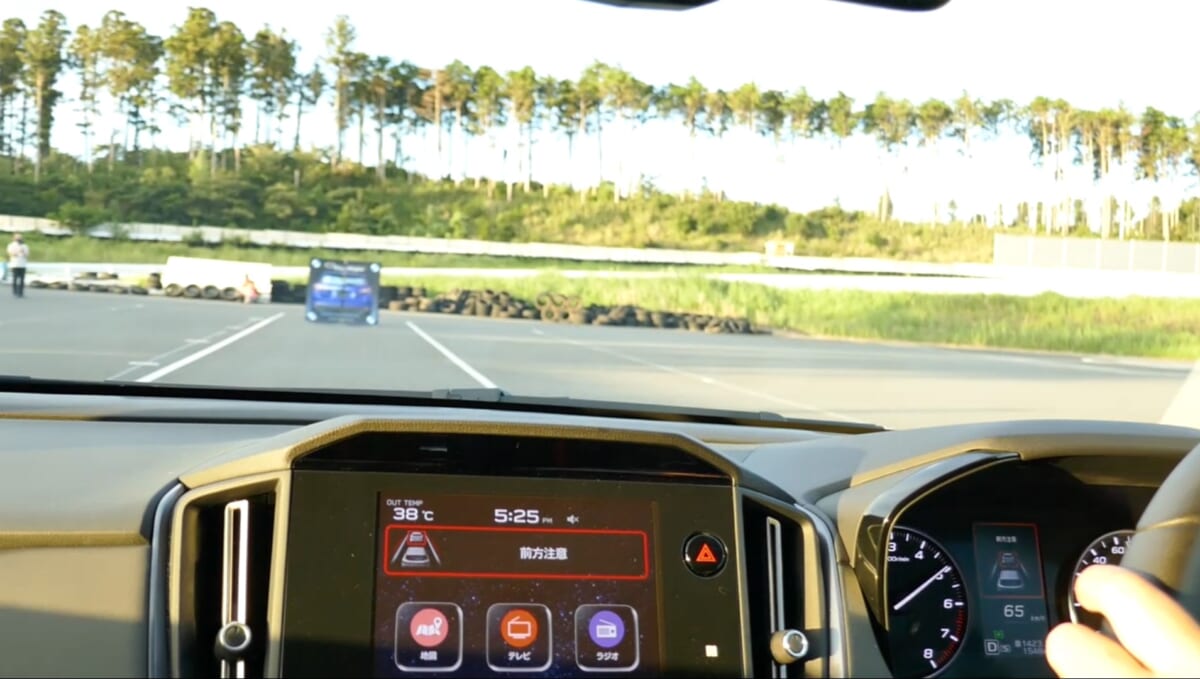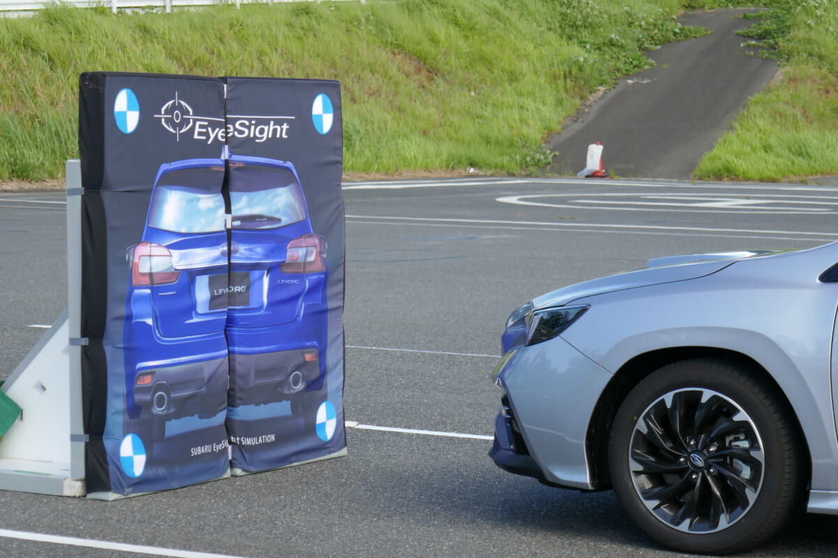 そして、最後のデモとして用意されたのが、「ぶつからないクルマ」としてアイサイトの存在を一躍知らしめたプリクラッシュブレーキの体験会です。この日は渋滞の最後尾を検知して自動停止するケースを想定して実施されました。新世代アイサイトではぶつからずに停止できる速度域を従来の50km/hから60km/hに引き上げていますが、それを実際に体験するものです。一般的に停止できるまでの制動距離は速度に2乗に比例して長くなりますから、多くのクルマがぶつからないで停止できる速度域を30km/h前後としていることを踏まえれば、この実力は相当なものであると言えます。