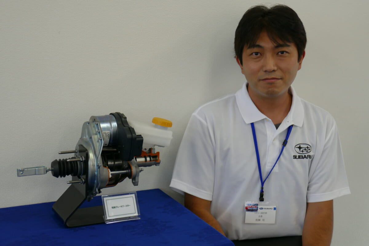 シャシー設計部の佐藤 司さんは「今までのブレーキでは反応速度や制動力で限界があった。新世代アイサイトでは、交差点での出会い頭の事故や歩行者との衝突を避けることを目標としており、従来の負圧を利用したブースターでは満足できる性能が発揮できない。コストは上がるけれどもこの実現のために敢えて採用した」と、採用に至った経緯を明かしてくれました。
