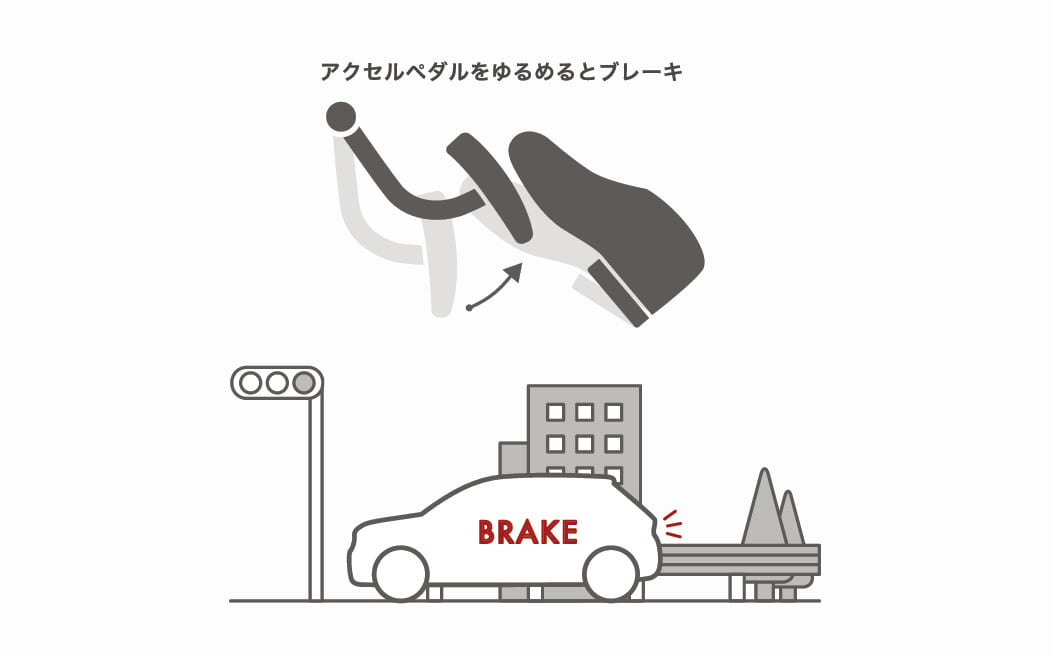 Honda eは減速時にも楽しいドライビングを提供。通常のAT車のようなアクセル、ブレーキの2ペダル運転とシングルペダル運転の選択ができます。その選択もボタンを押すだけで完了。アクセルペダルを離すだけで減速が行われます。ハンドルの奥にあるパドル式の減速セレクターによってブレーキの効き具合を3段階にコントロールできます。これによりアクセルワークに集中できるスポーティーなドライビングが可能なことを確認することができました。