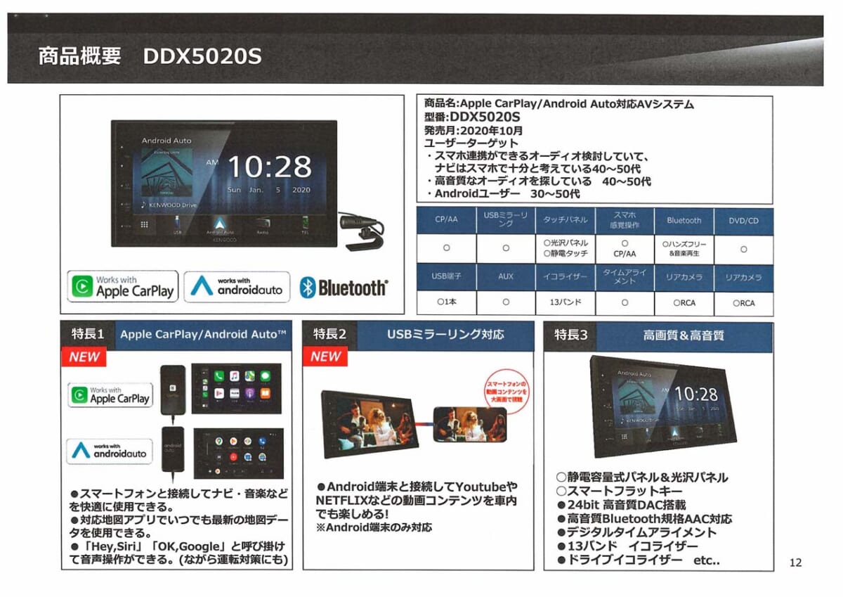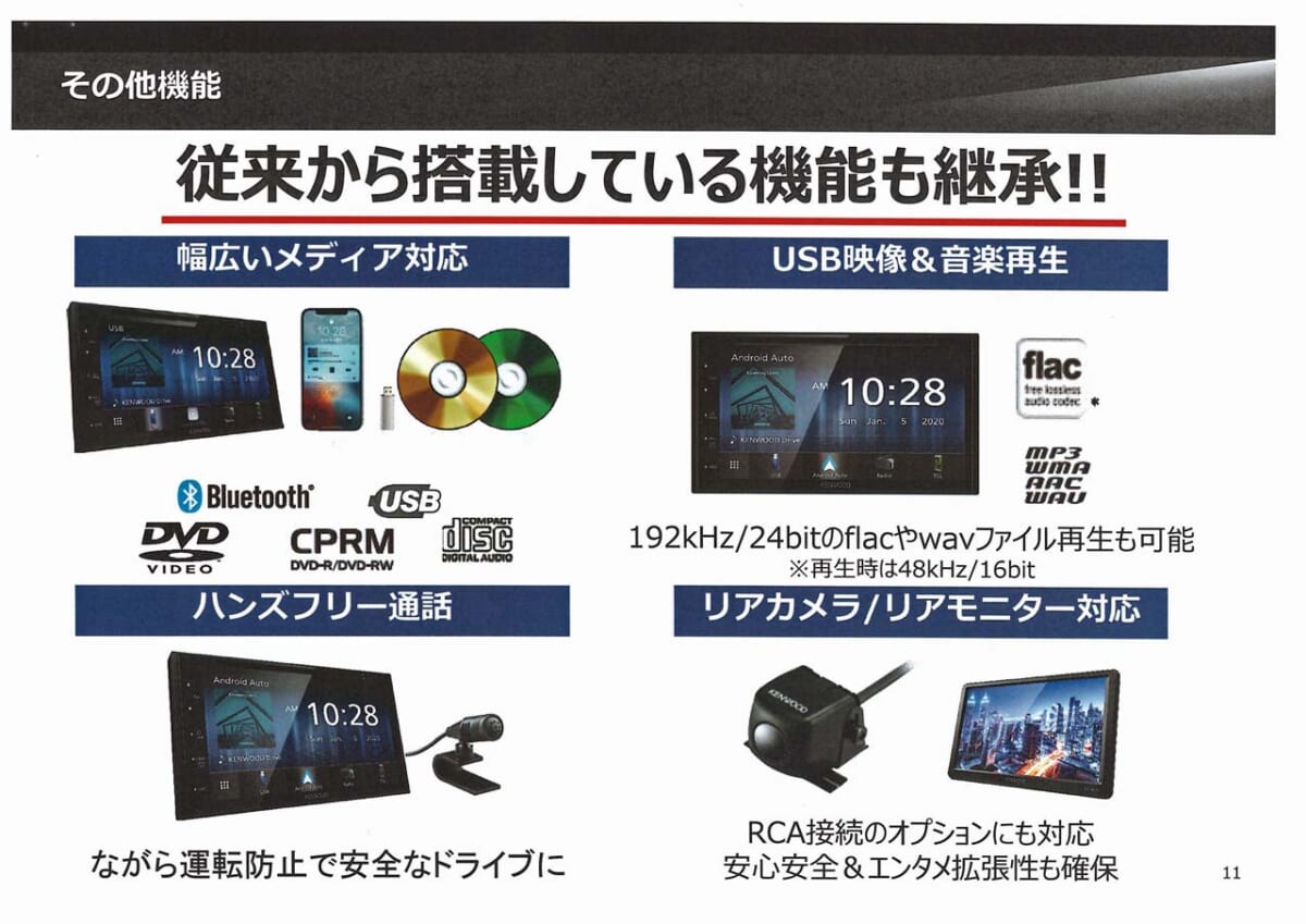 その状況さえ納得できればDAはかなり魅力的です。特に私がDDX5020Sを評価したいのはDVD/CDドライブを備えていることです。最近は自動車メーカー系DAでさえ、これを省く傾向が続いているだけに、定番のメディアが再生できるメリットは大きいと思います。しかも、ハイレゾ音源である192kHz/24bitのflacやwavファイルの再生が可能で、Bluetoothオーディオにも対応しているので、多彩なソースを楽しみたい人にも最適です。