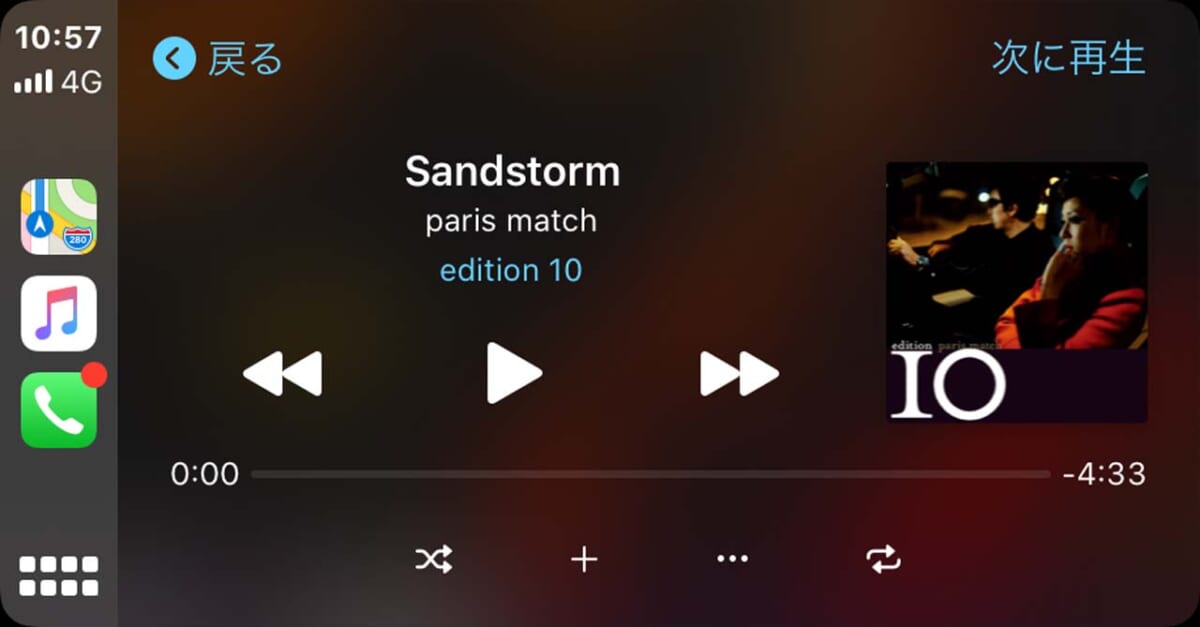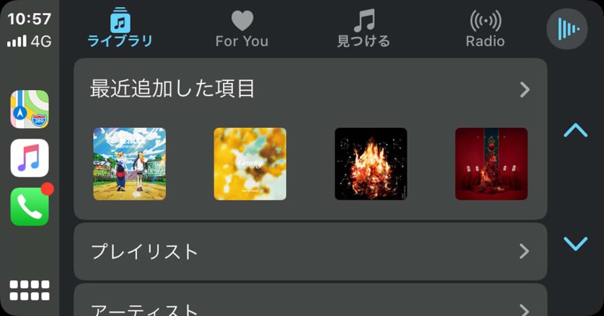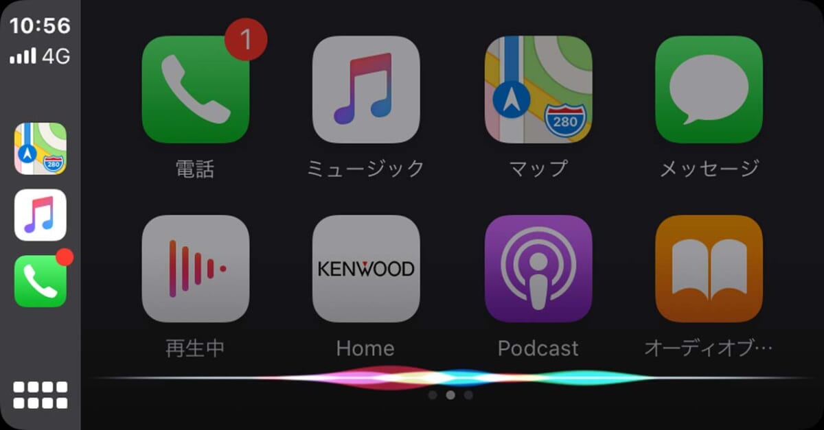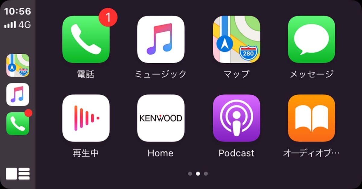 iPhoneをDDX5020Sに接続するとホーム画面にApple CarPlayで使えるお馴染みのアプリのアイコンが表示されます。Android AutoではGoogleが用意した純正ナビアプリと日本ではあまり馴染みがない「waze」が使えるだけですが、Apple CarPlayではApple純正ナビアプリの他、Yahoo!ナビやNAVITIMEなどメジャーなアプリが使えます。そういう意味ではApple CarPlayの方が利用範囲はずっと幅広いということになるでしょうね。