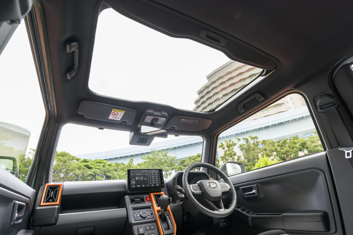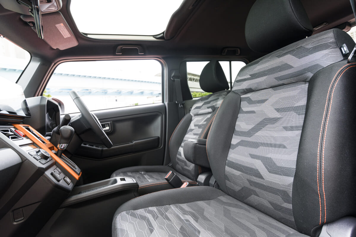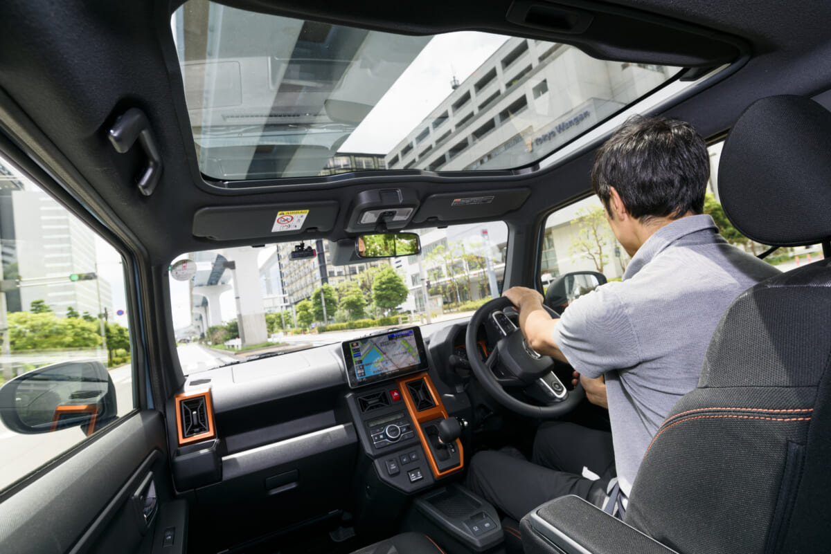 今回は一般道での試乗が中心だったのですが、街中では取り回しの良さが光ります。聞けばタイヤが軽自動車としては大径な15インチであるにも関わらず、最小回転半径は4.8mに抑えているとのこと。SUVとしての走破性を高めながら小回りが効くので、キャンプ場に向かう狭い道などでも安心して運転できそうです。