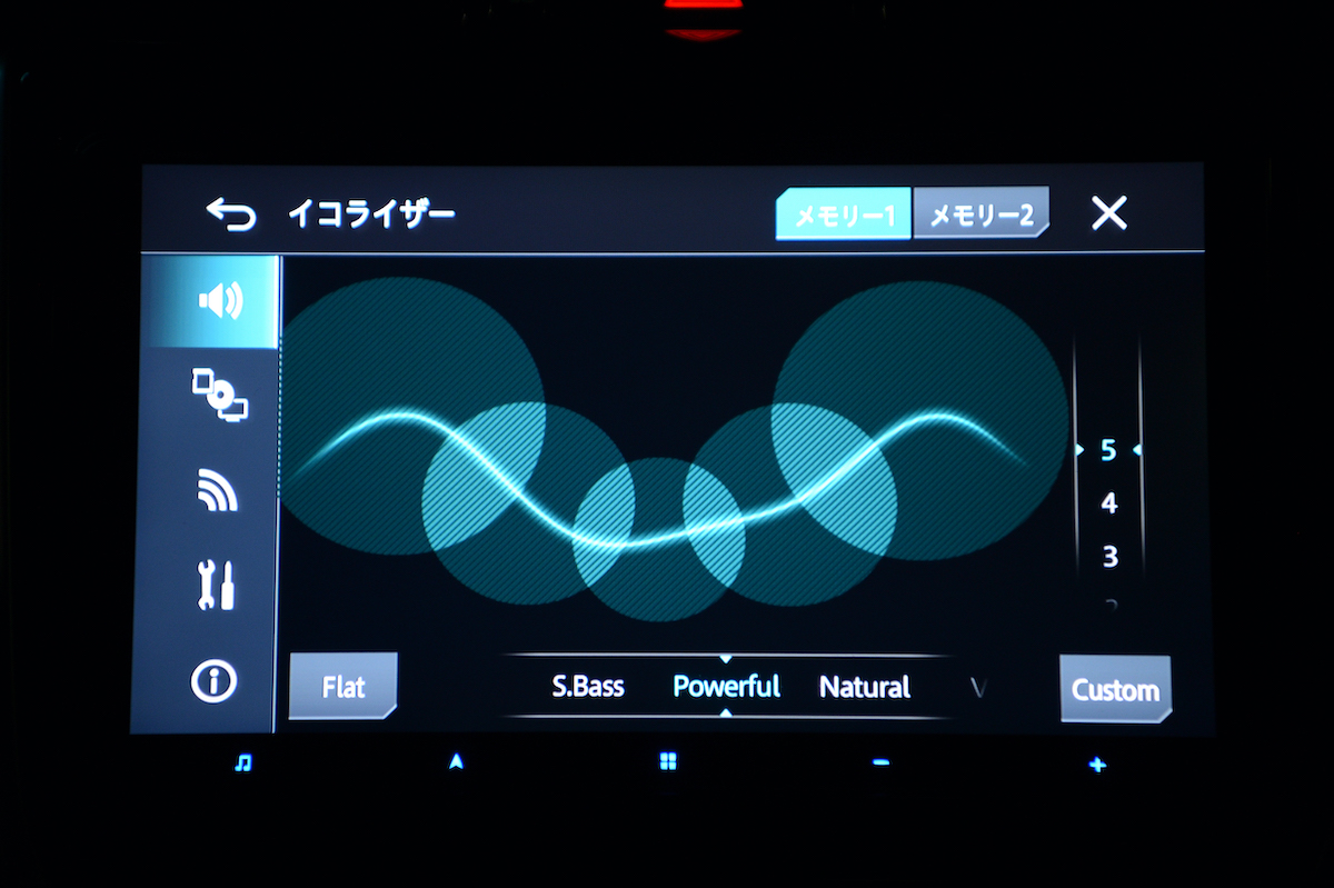 サイバーナビはパイオニアブランド、カロッツェリアブランドということもあり、音も高品質である。イコライザー機能などの調整機能はもちろん、マスターサウンドリバイブという機能では、CD音源や圧縮音源を分析して補完してハイレゾ相当の音質にまで高めてくれるのだ。