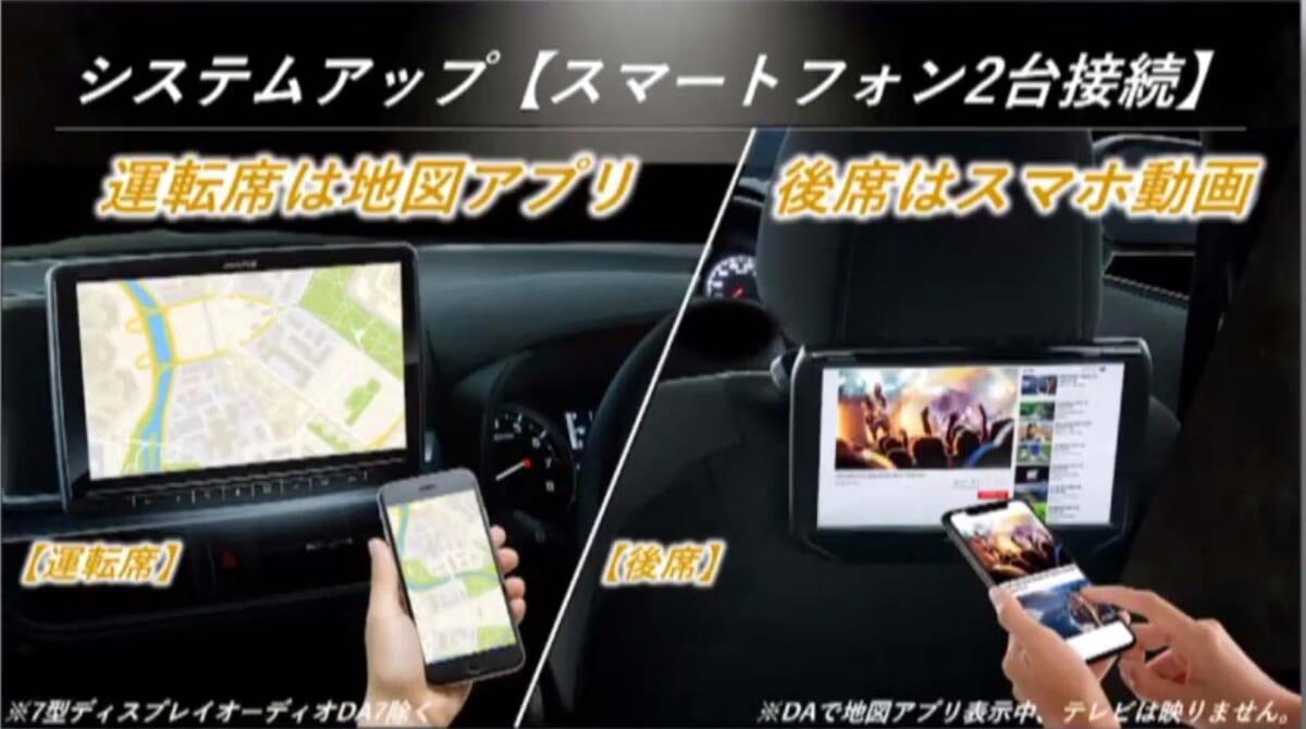 スマホ2台を接続して前席でカーナビ、後席でエンタメを同時に楽しめる