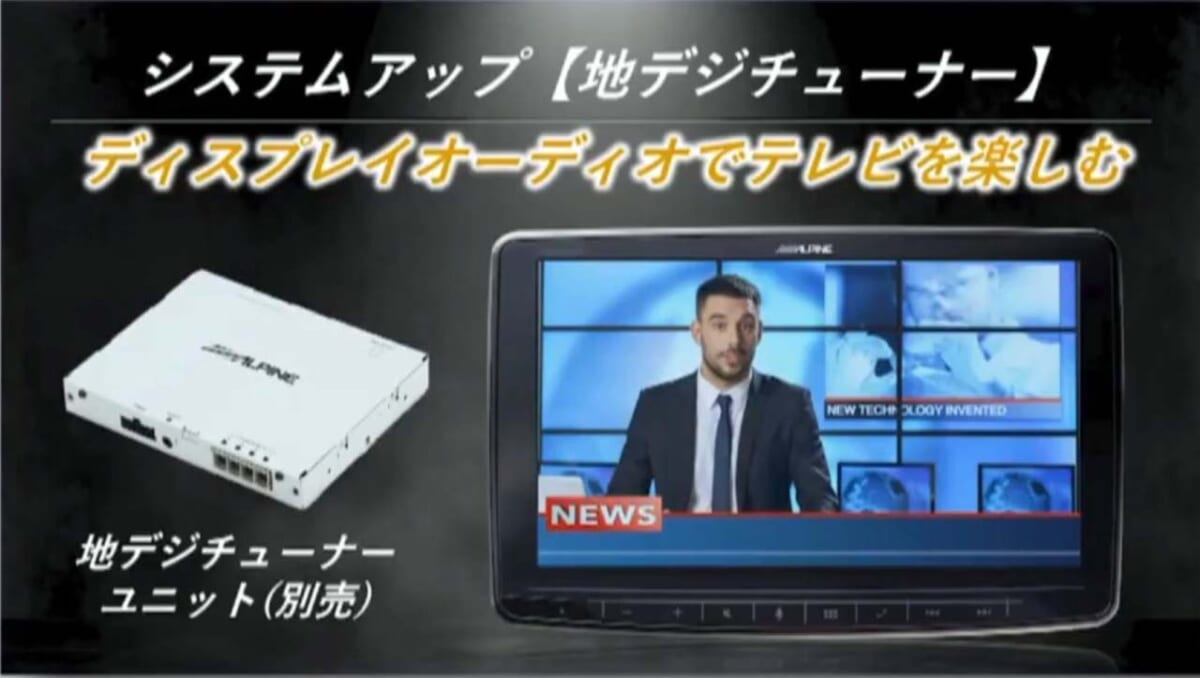 中村氏は上位2モデルの画面が大きいことを訴え、特にDAとして業界最大サイズである11型はスマホの3.4倍、9型でも2.2倍の大画面で楽しめることを強調。システムアップとして、別売りの地デジチューナーユニットは「カーライフシーンにはなくてはならない必需品」として紹介がありました。また、アルパインならではのサウンド重視の設計として、本製品と組み合わせ可能なデジタルアンプによる高音質化についても語ってくれました。