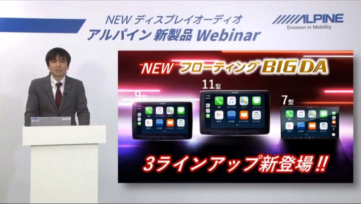 オンライン発表会では司会進行としてアルパインストアで製品を紹介している実演販売士のボス水野氏が登場し、アルパインマーケティング イノベーション開発グループの中村謙介氏が製品概要を説明。自動車系YouTuberとして活躍する「Motorz」の内原 優氏がデモカーでの使用レポートを行いました。