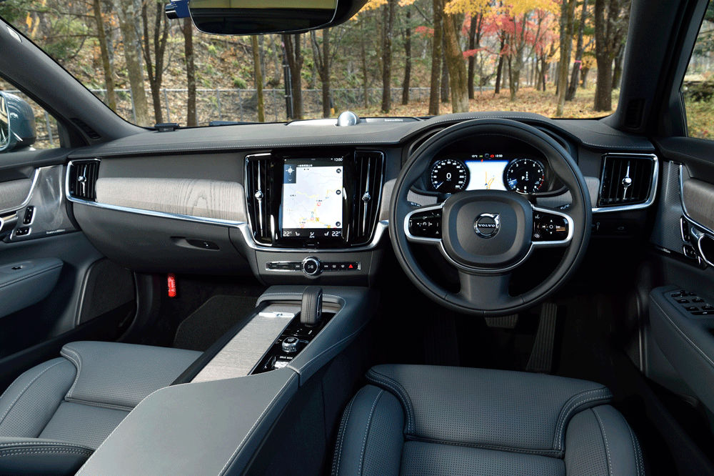 持ち前の安全性の高さ、という点でも新しいV90シリーズは万全です。ボルボらしい「対向車対応機能」に代表される衝突回避・被害軽減ブレーキの最新版「シティセーフティ」に加え、全車速追従機能付きアダプティブ・クルーズコントロール(ACC)や車線維持支援機能、道路逸脱回避機能などは全車に標準で装備されています。