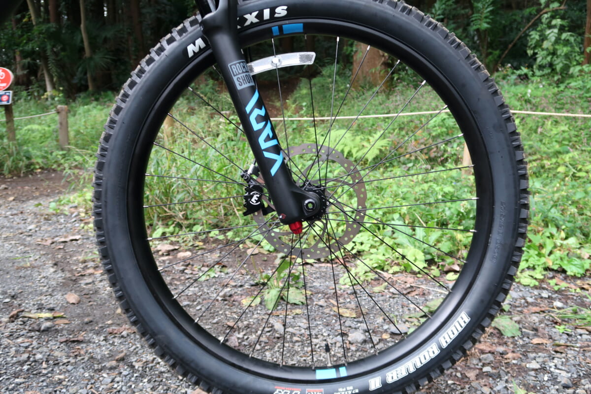 フロントサスペンション(フォーク)は「ROCKSHOX YARI RC boost」でストロークは160mm。フロントとリアのサスペンションが常にタイヤを路面に押し付けている感覚が強く、路面をしっかり掴んで走っている感覚があり、一般的な軽いマウンテンバイよりもリアが浮きにくいのでフルブレーキングもとても楽でした。すべてに高性能な分、ブレーキのコントロールやモードセレクトに若干の慣れは必要でしょう。