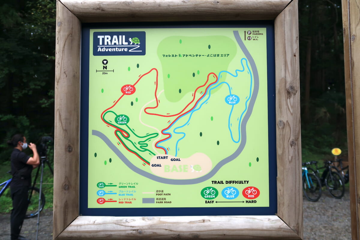 トレイルアドベンチャー・よこはまのグリーントレイルコース(初級)とレッドトレイルコース(上級)をYPJ-MT Proにて試乗。攻略性のあるアップダウンヒルがあり、森のなかを駆け抜ける爽快感はMTBならではの楽しさでした。コースのなかには連続するコブやバンクの付いた急カーブも設けられ、腕に自信のある上級者も楽しむことが可能です。