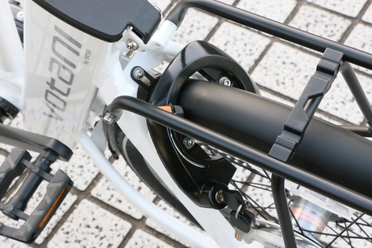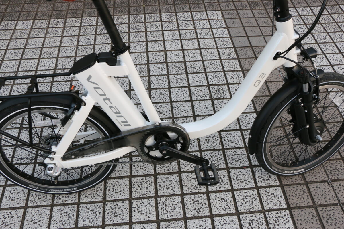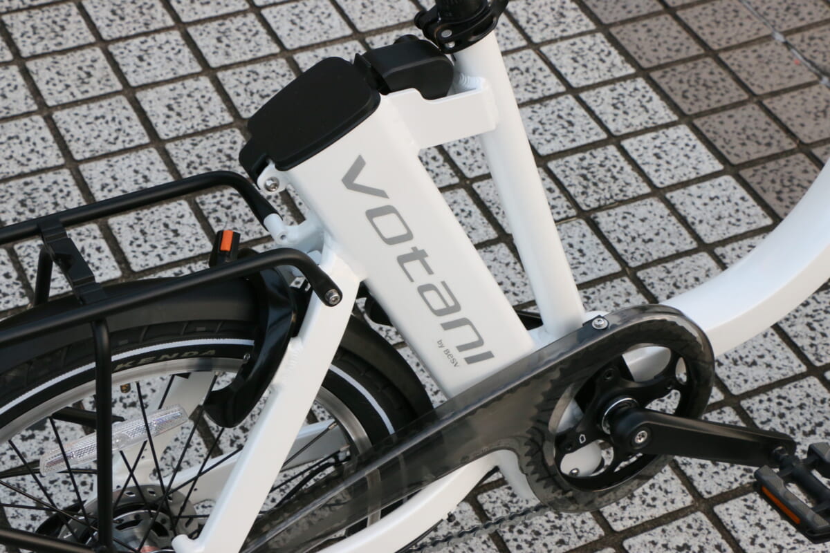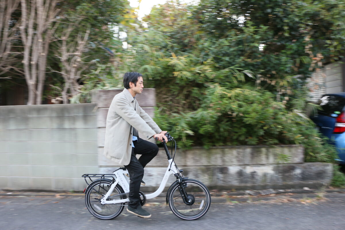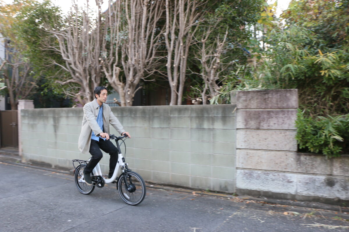 実際にペダルを漕ぎ出してみると、ベスビーが手掛けたアシスト機構はさすがの完成度。アシスト感が自然で、ペダルを踏んだ際に車体が進み過ぎて怖い思いをするようなことがありません。ママチャリタイプの電動アシスト自転車とは一線を画するアシストフィーリングで、どちらかというとe-Bikeに近い感覚です。
