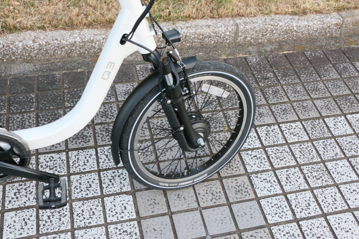 U字型のフレームは、車体の剛性が落ちやすいので、強い力でペダルを踏むとフレームがヨレる感覚が伝わってくる自転車も少なくありませんが、Q3はその感覚がありません。乗りやすく、実用性も高い車体ですが、しっかり作られているので乗っていても気持ちが良く楽しい! ブレーキの効きも良く、フロントサスペンションがショックを吸収してくれるので安心して走れました。
