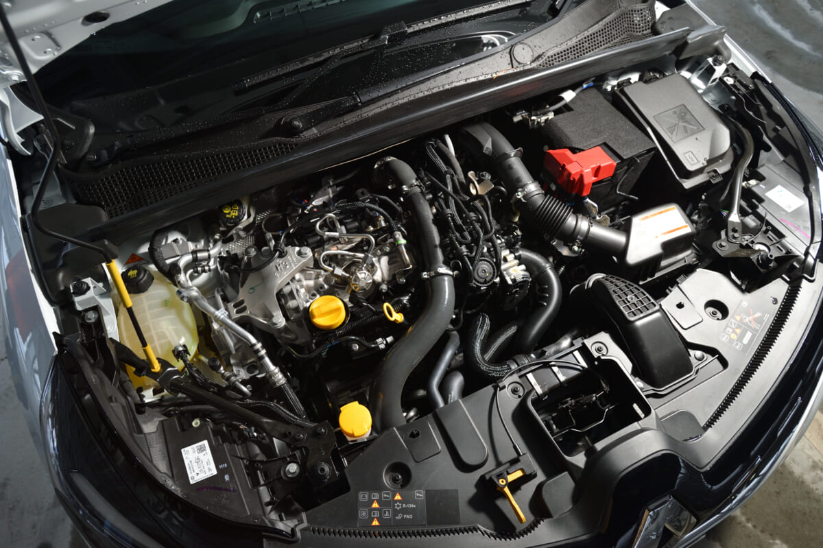 キャプチャーのエンジンは1.3Lの直噴ターボエンジン。この排気量帯では3気筒を採用するメーカーも増えていますが、やはり4気筒のほうが好みです。エンジン音に安普請な印象がないし、振動が小さく不快感がありません。
