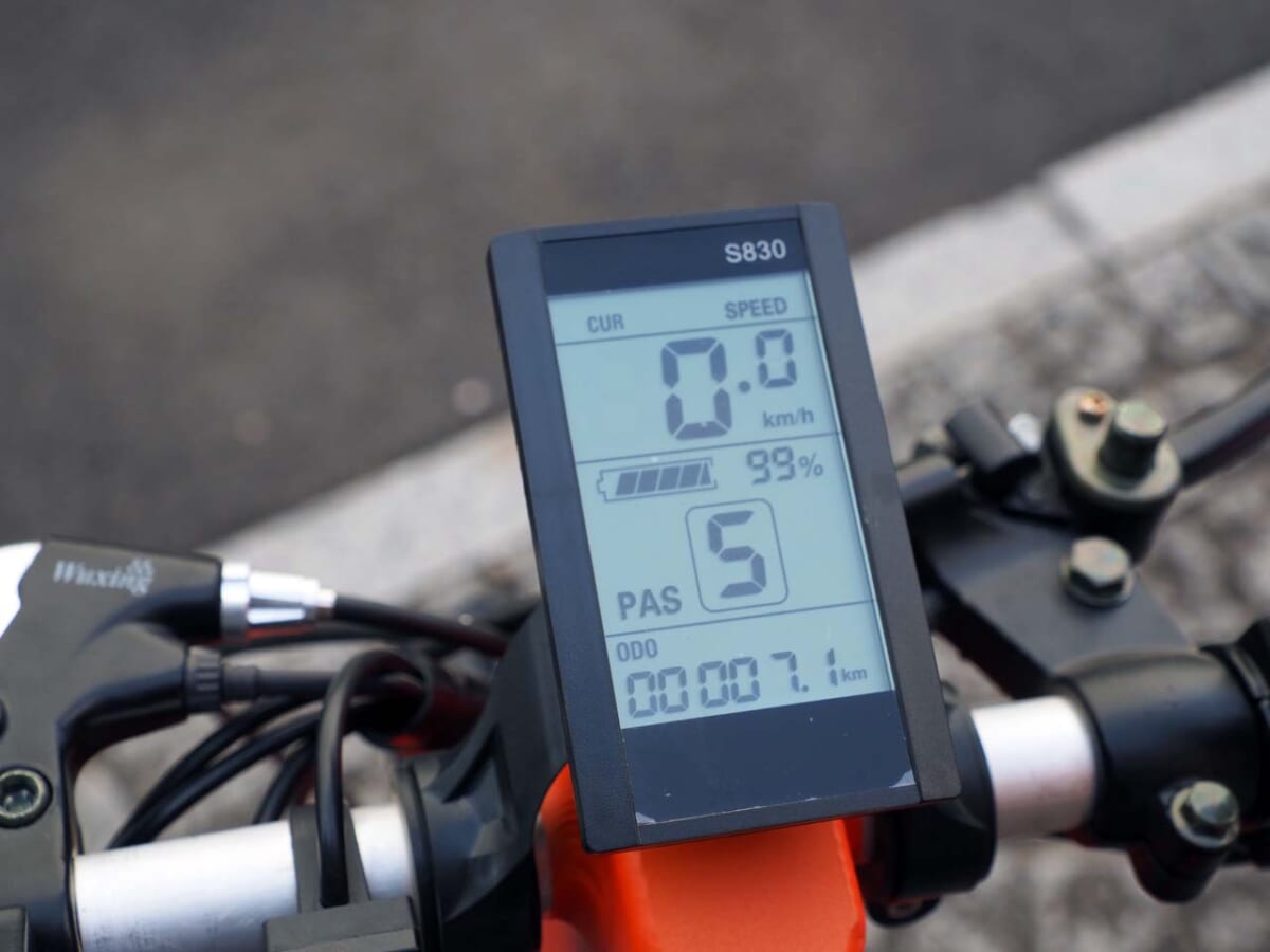 ただ、スペックの最高速度30km/hには、全開にしてもなかなか到達できません。試乗中は信号に引っかかったこともあり、速度は25km/h強程度までしか出ませんでした。スタッフによれば「体重50kg程度の人が乗った場合のスペックなので、それより重いと最高速度は低くなる可能性がある」とのこと。私は体重が80kg近くあるのでその影響が出ていたのかもしれません。