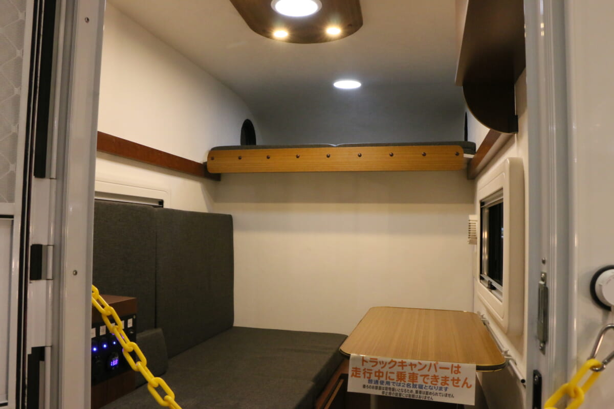 こちらは軽バンのスズキ「エブリイ」がベースですが、横開き式のポップアップルーフを装備しているのが特徴。軽バンベースだと、車内空間が限られるのが欠点ですが、屋根が開いて居室になるポップアップルーフで空間を拡大できるようになっています。これまでは縦開き式のポップアップルーフが主流でしたが、このタイプは足元が狭く、寝ることはできても大人が過ごすには窮屈なものでしたが、横開き式とすることで空間にゆとりを確保。オプションを装備した展示車の価格は413万27円(ポップアップルーフなしは258万7828円)です。※以下、すべて税込。