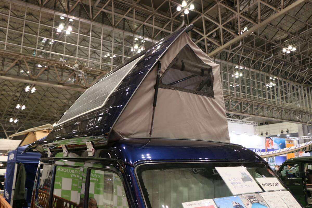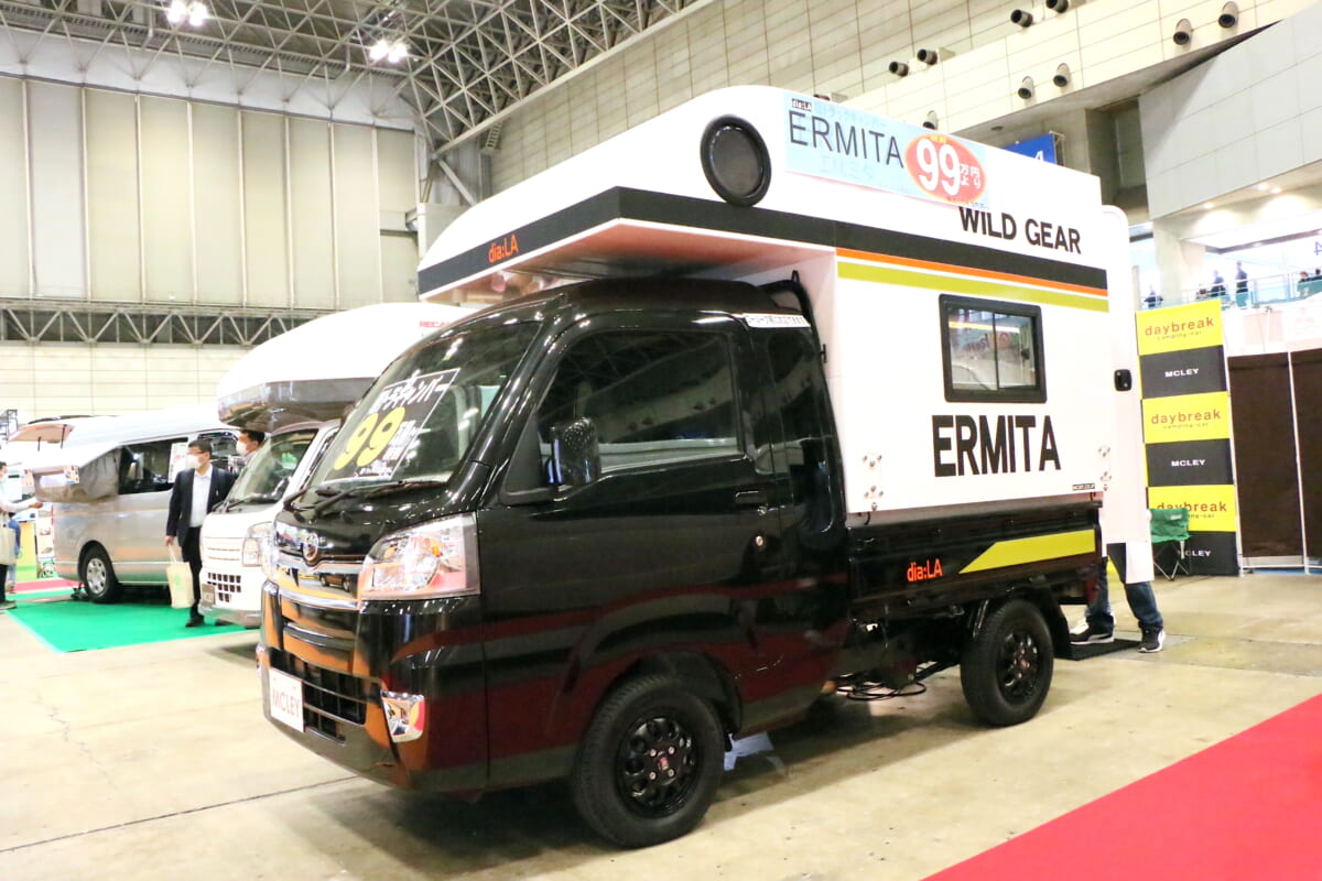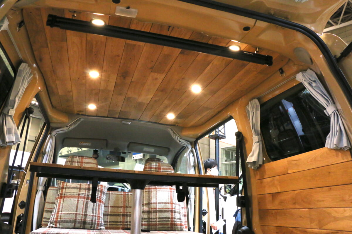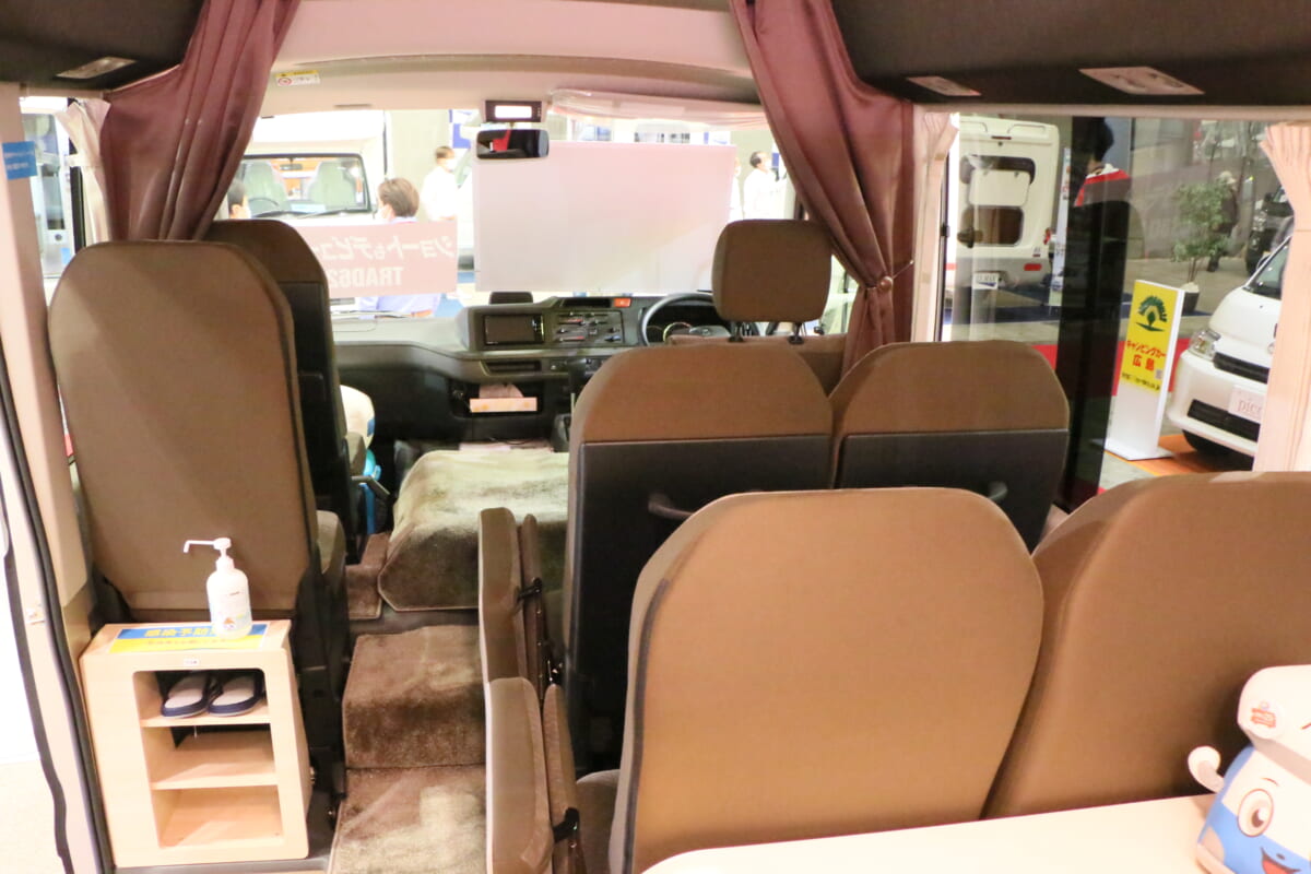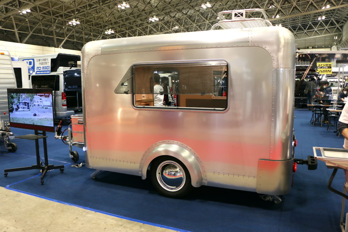 トヨタのマイクロバス「コースター」をベースに、内装をキャンパー仕様としたモデル。キャビンの奥には2つの常設ベッドを備えるほか、リビングスペースもベッド展開が可能で大人3人が就寝できます。それでいて、9人が乗車可能なように前向きの座席も残しており、窓も塞がずに運転もしやすいように配慮。3世代の家族で出掛けて、若い世代は外でキャンプするような使い方を想定しているとのことです。価格は1188万円。