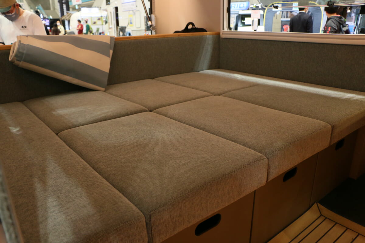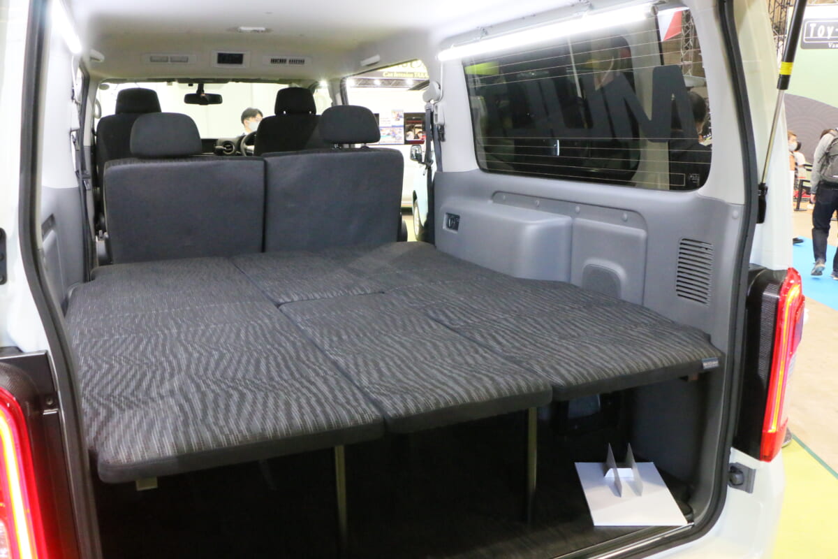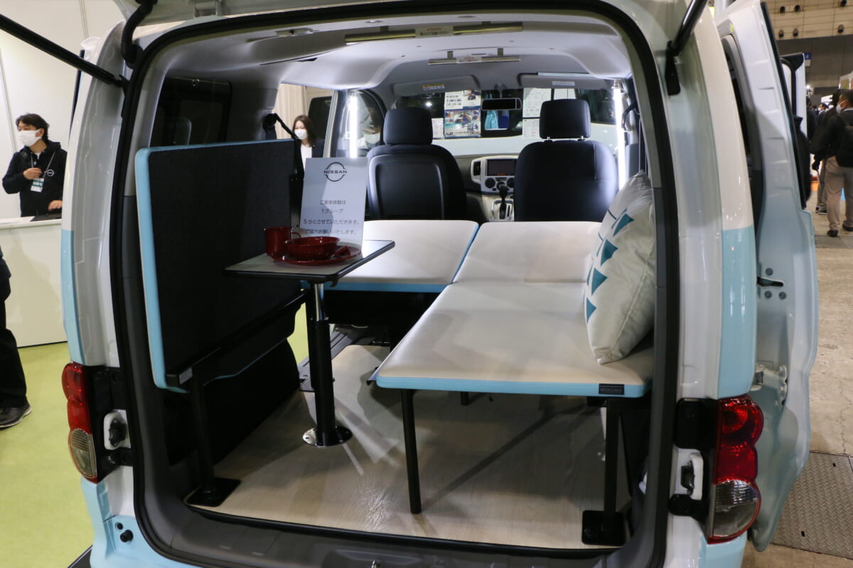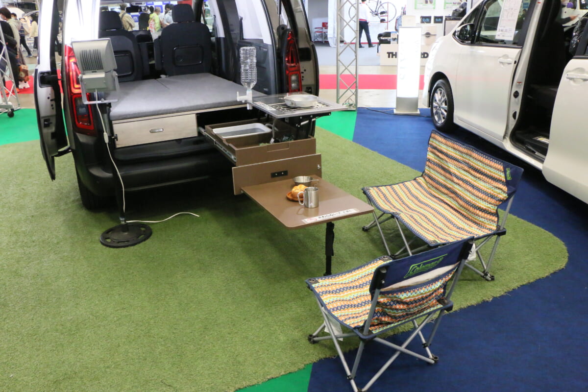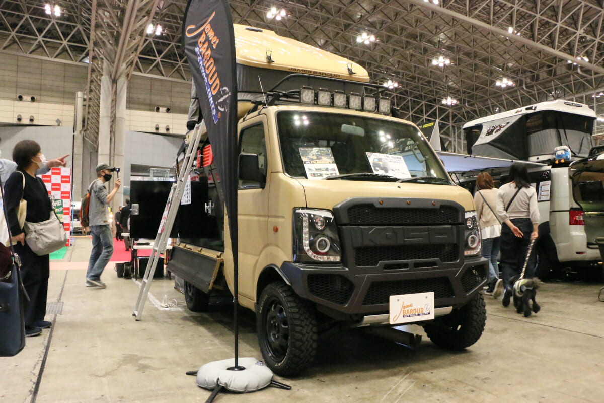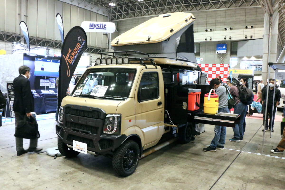トヨタのマイクロバス「コースター」をベースに、内装をキャンパー仕様としたモデル。キャビンの奥には2つの常設ベッドを備えるほか、リビングスペースもベッド展開が可能で大人3人が就寝できます。それでいて、9人が乗車可能なように前向きの座席も残しており、窓も塞がずに運転もしやすいように配慮。3世代の家族で出掛けて、若い世代は外でキャンプするような使い方を想定しているとのことです。価格は1188万円。