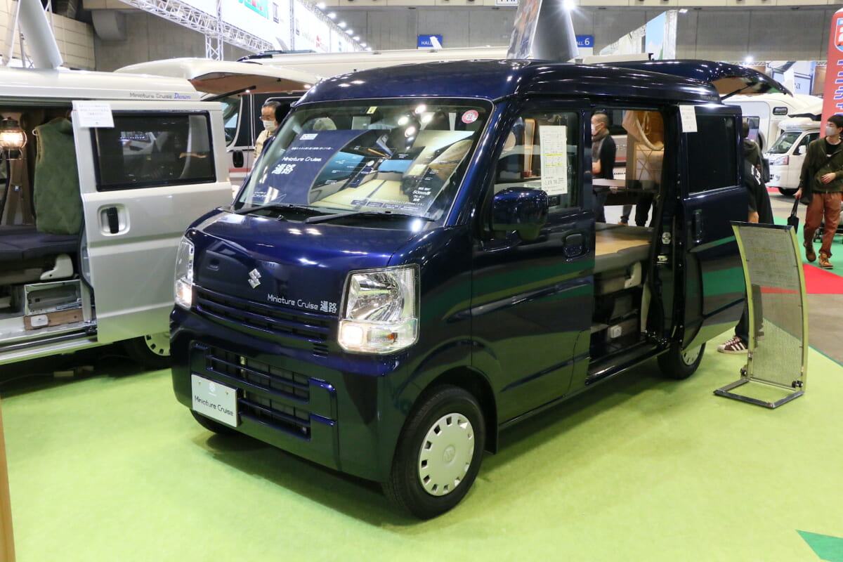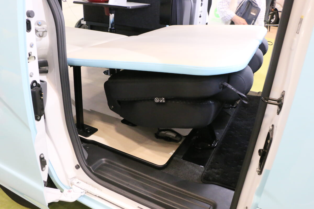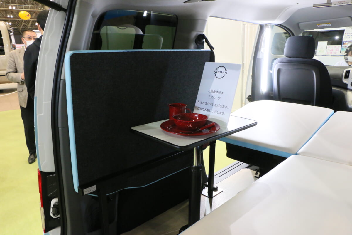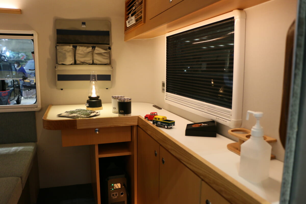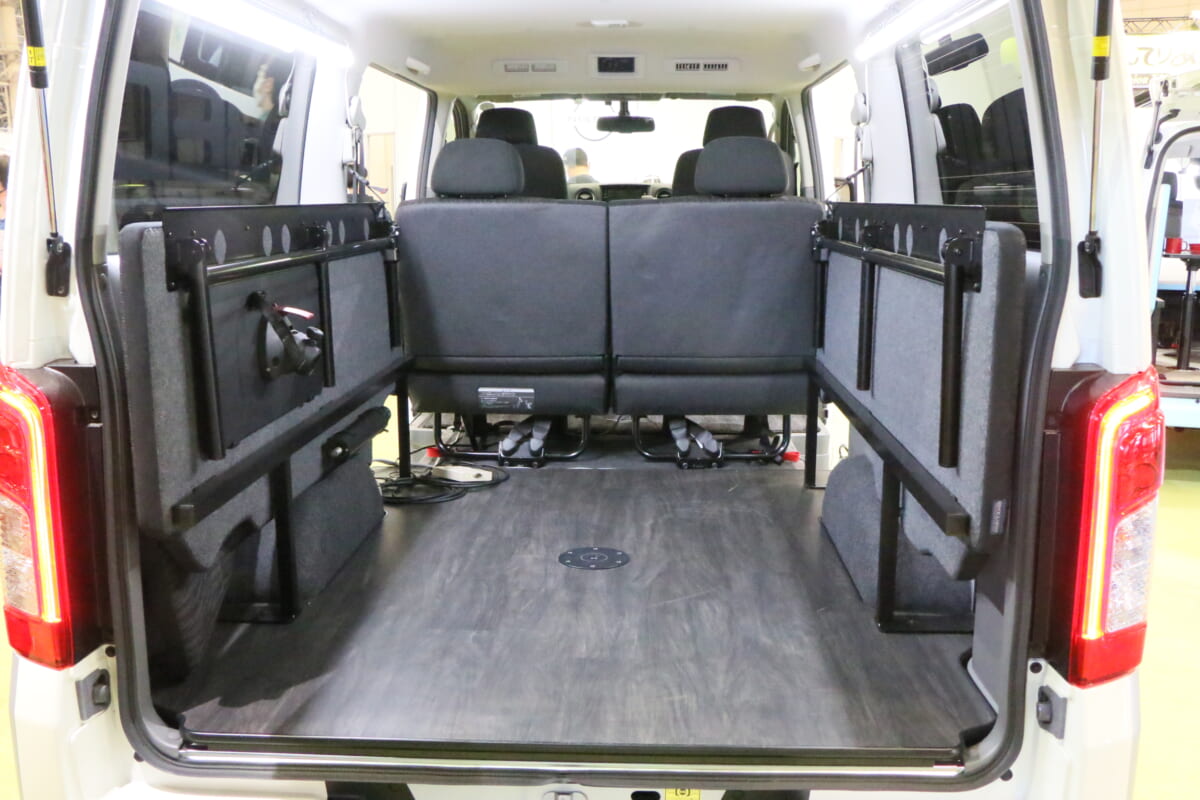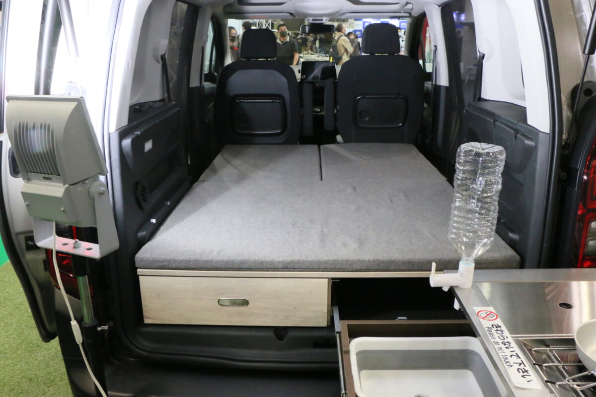トヨタのマイクロバス「コースター」をベースに、内装をキャンパー仕様としたモデル。キャビンの奥には2つの常設ベッドを備えるほか、リビングスペースもベッド展開が可能で大人3人が就寝できます。それでいて、9人が乗車可能なように前向きの座席も残しており、窓も塞がずに運転もしやすいように配慮。3世代の家族で出掛けて、若い世代は外でキャンプするような使い方を想定しているとのことです。価格は1188万円。
