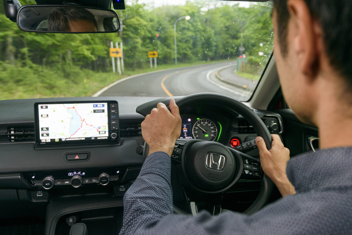 「i-MMD」と呼ばれていた頃から、そのパワートレーンを搭載したモデルはいくつも乗ってきましたが、完成度にますます磨きがかけられている印象です。発進時はモーターらしい力強い加速が味わえ、中間速度での加減速もスムーズ。過去にドライブした際には、発電機として用いているため、アクセル開度に関わらず一定回転で回り続けているようなエンジン音に違和感をおぼえたこともありましたが、新型「ヴェゼル」ではそうした違和感もほぼ払拭されています。