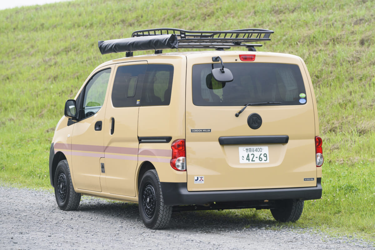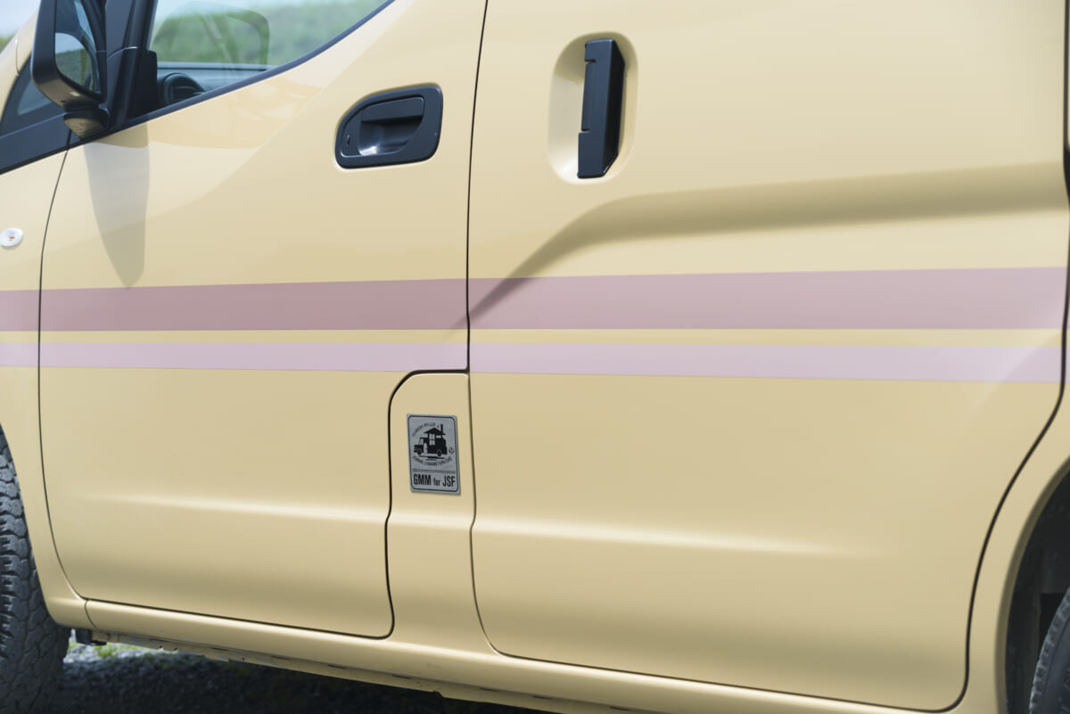 ボディカラーは標準の「C-01」と同じく、日産の純正と同じ工場で塗装されたもの。メーカー純正と同じクオリティと耐久性を実現しています。「JSF」モデルはさらにサイドラインや給油口のパネルなどを装備。フロントグリルはゴードンミラーのオリジナルで、「NV200」の商用車っぽさを廃しています。