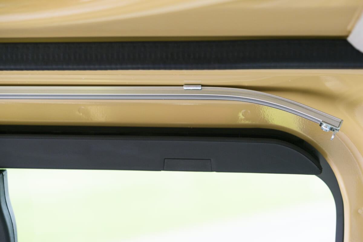 撮影した車両には、オプションのルーフキャリアやサイドオーニングも装備されていました。かさばる荷物はキャリアに載せておけば車内で邪魔になることもありませんし、手軽に日差しを避けられるオーニングは付いていると、車内の快適な空間を拡張できて便利。こういうクルマが1台あると、ライフスタイルが一気に広がりそうです。