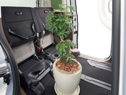 軽商用バンとしてレアなFF車。ピラーレスのスライドドアで開口部が広く、床はフラットで使い勝手が良い。