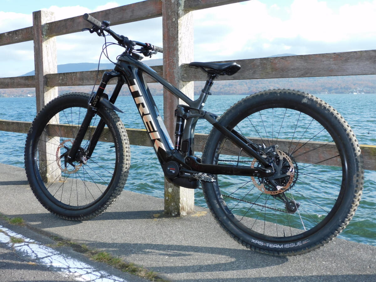 トレックが誇るハイエンドe-MTB。ロングトラベルのカーボンフレークにボッシュ製のパフォーマンスラインCXを組み合わせ、パワフルなライドを約束する。太いダウンチューブに内蔵したバッテリーが存在感とデザイン性をアピール。