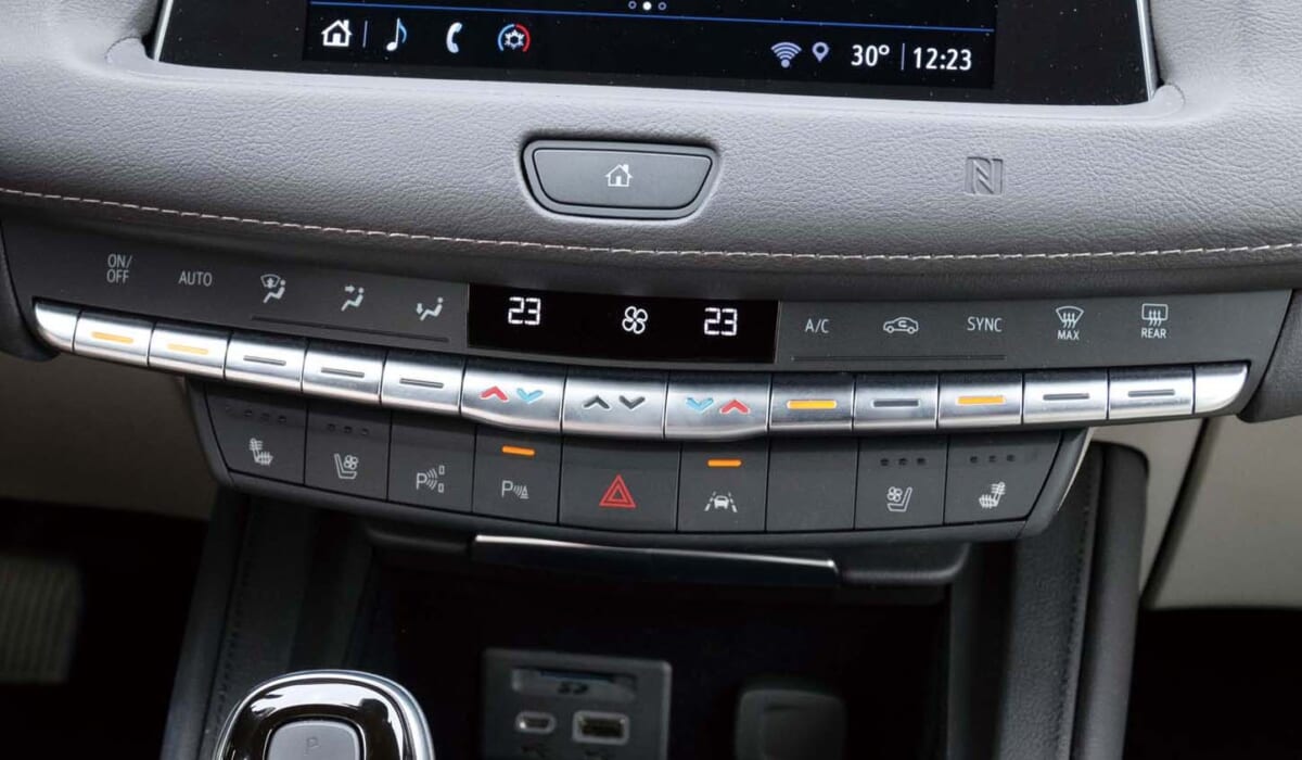 グレードにもよりますが、イオン発生除菌機能付きのオートエアコンが採用されているというのは現代的で、まるで日本車のような配慮です。また、このスイッチ類が真横に一直線に並べられた姿は壮観でもあります。
