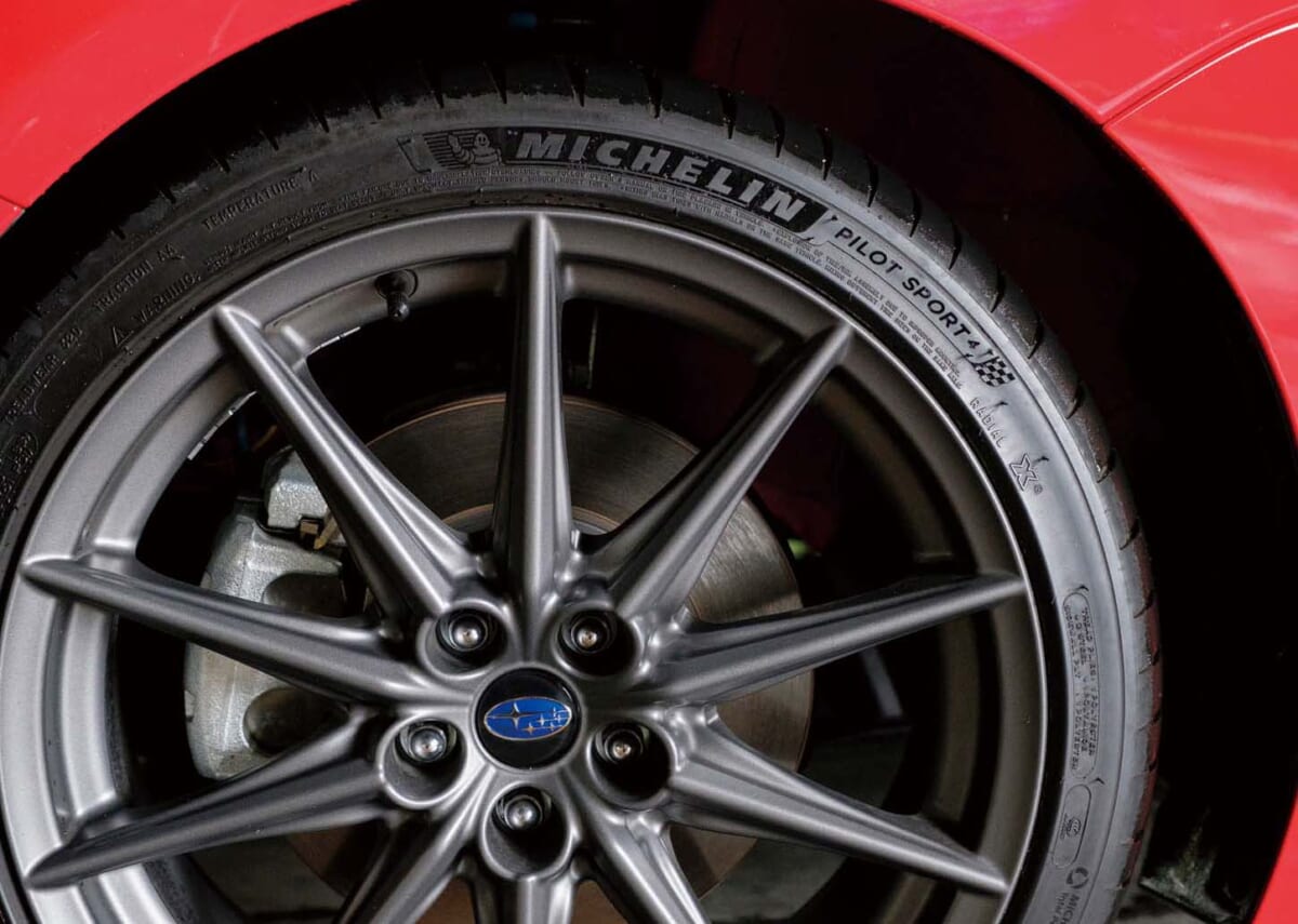 タイヤは走りの質にも乗り心地にも影響する大変重要なパーツです。今回のBRZには、なんと名門ミシュランの「パイロットスポーツ4」という超優良ブランドが装着されていました。高価ですが、これだけで走りの質感が2段階ほど上がります。