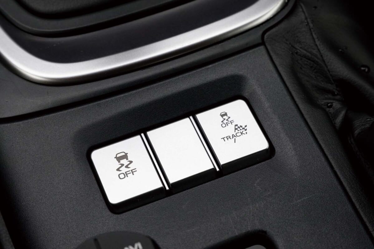 センターコンソール上にあるボタンを長押しすることで、車両安定制御システム「VSC」の制御介入タイミングを遅らせる「TRACKモード」に変更できます。これはつまり、スポーティに走らせたときの、クルマによる自動制御の範囲を減らすことで、運転がよりドライバーの腕頼みになってくるということです。運転に自信のあるドライバーのためのボタンですね。